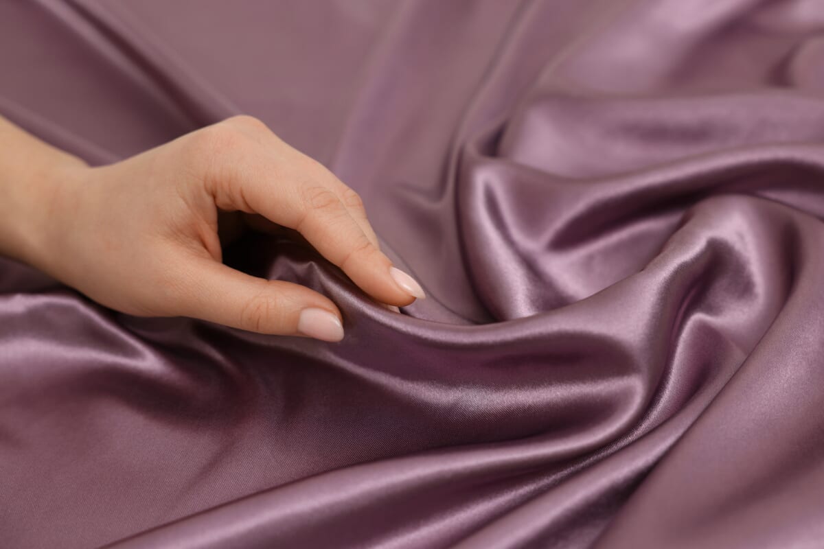 サテンは布の縦糸と横糸のどちらか一方が長く表面に浮いている織り方で、独自の構造により生地に光沢があることが大きな特徴です。つるつるとした滑らかな手触りでひっかかりも少ないため、ドレスなどの豪華な衣装だけではなく、寝具やパジャマといった日常的なシーンでも見かける生地となっているでしょう。