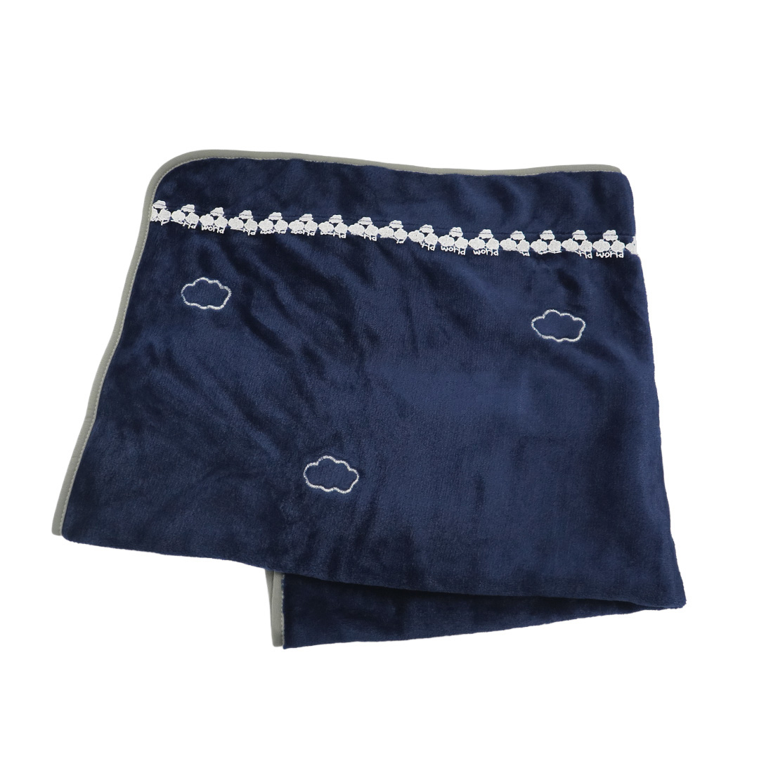 ふわもこ小物/巾着ポーチ付きブランケット(ネイビー)