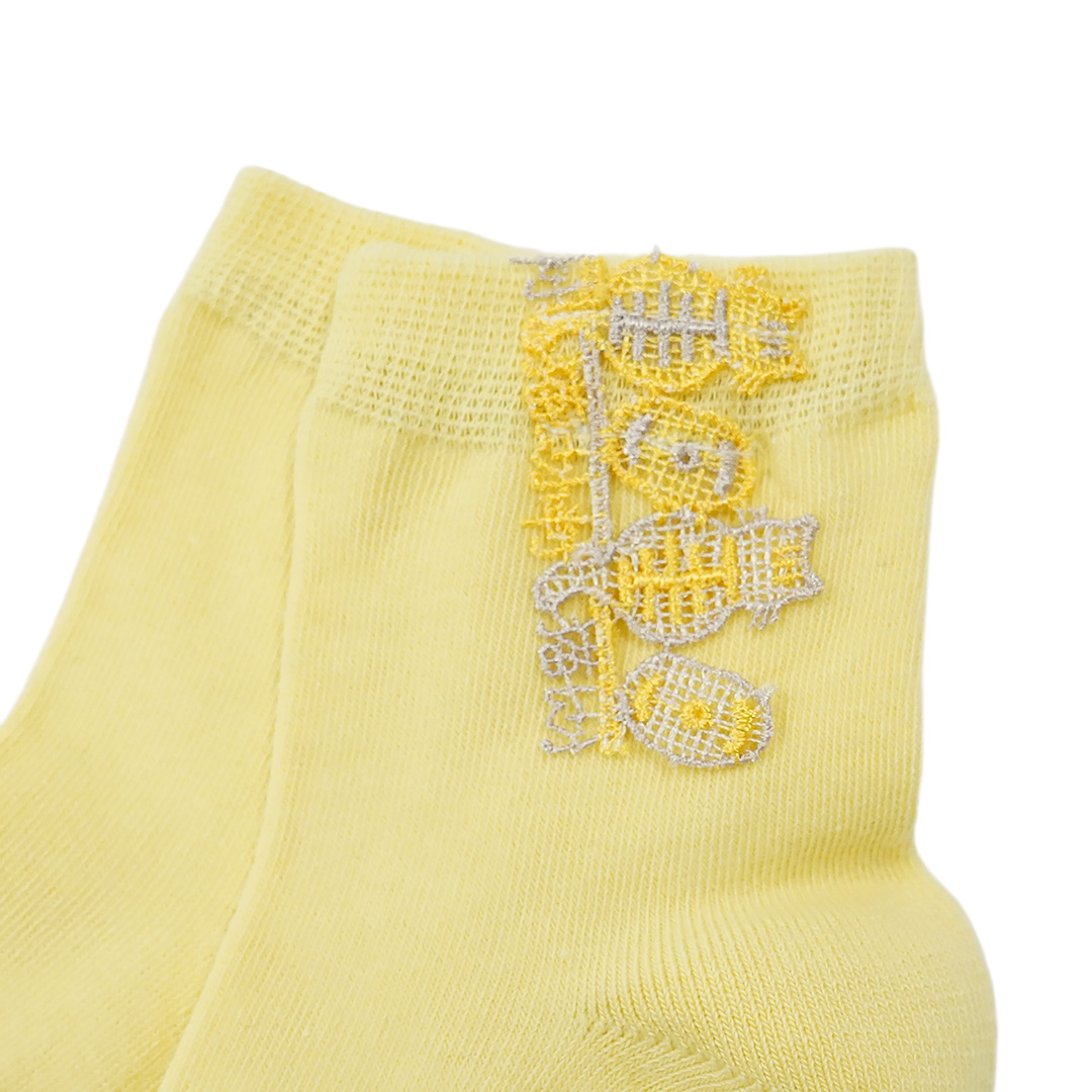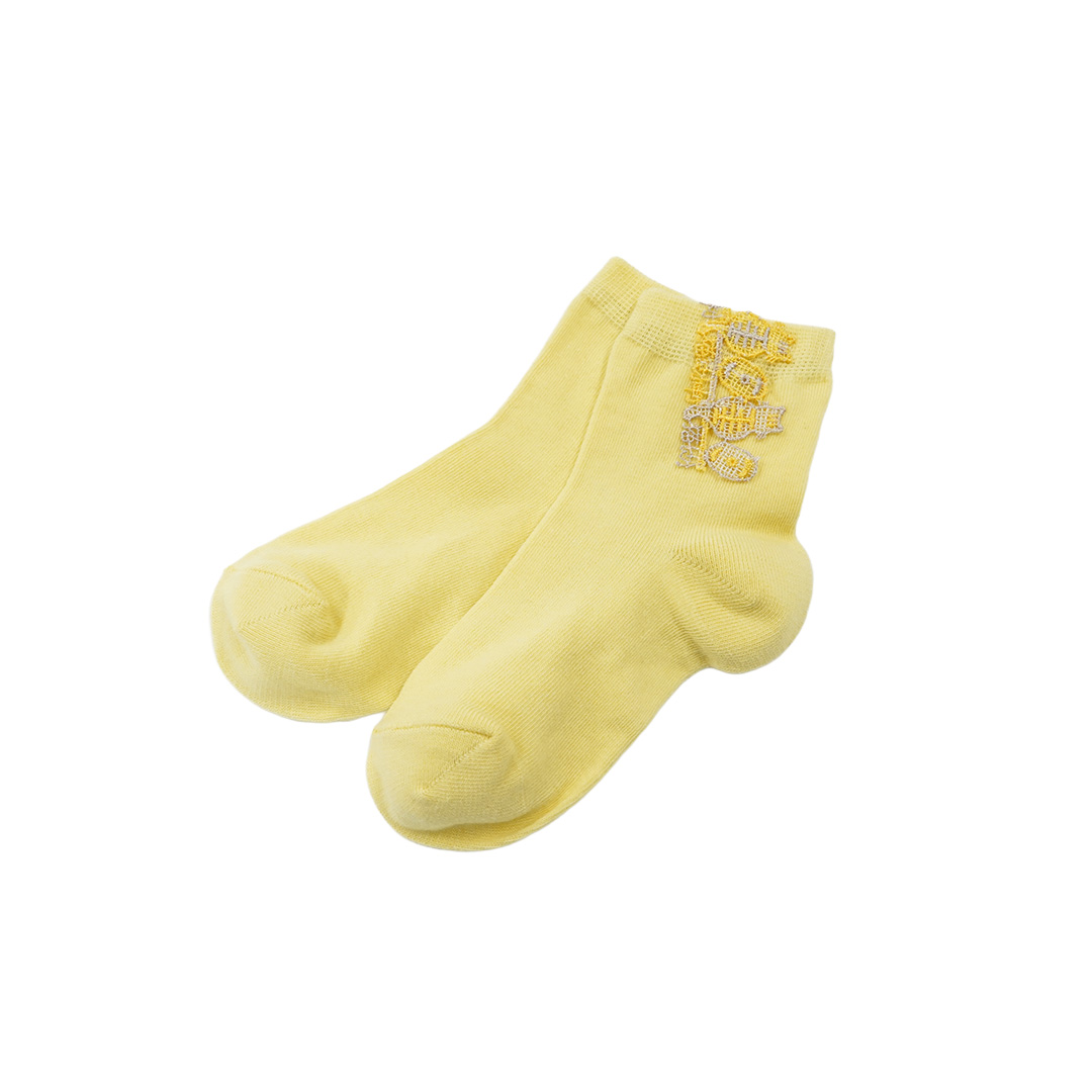 ハッピーレースこどもソックス/猫に小判(イエロー)