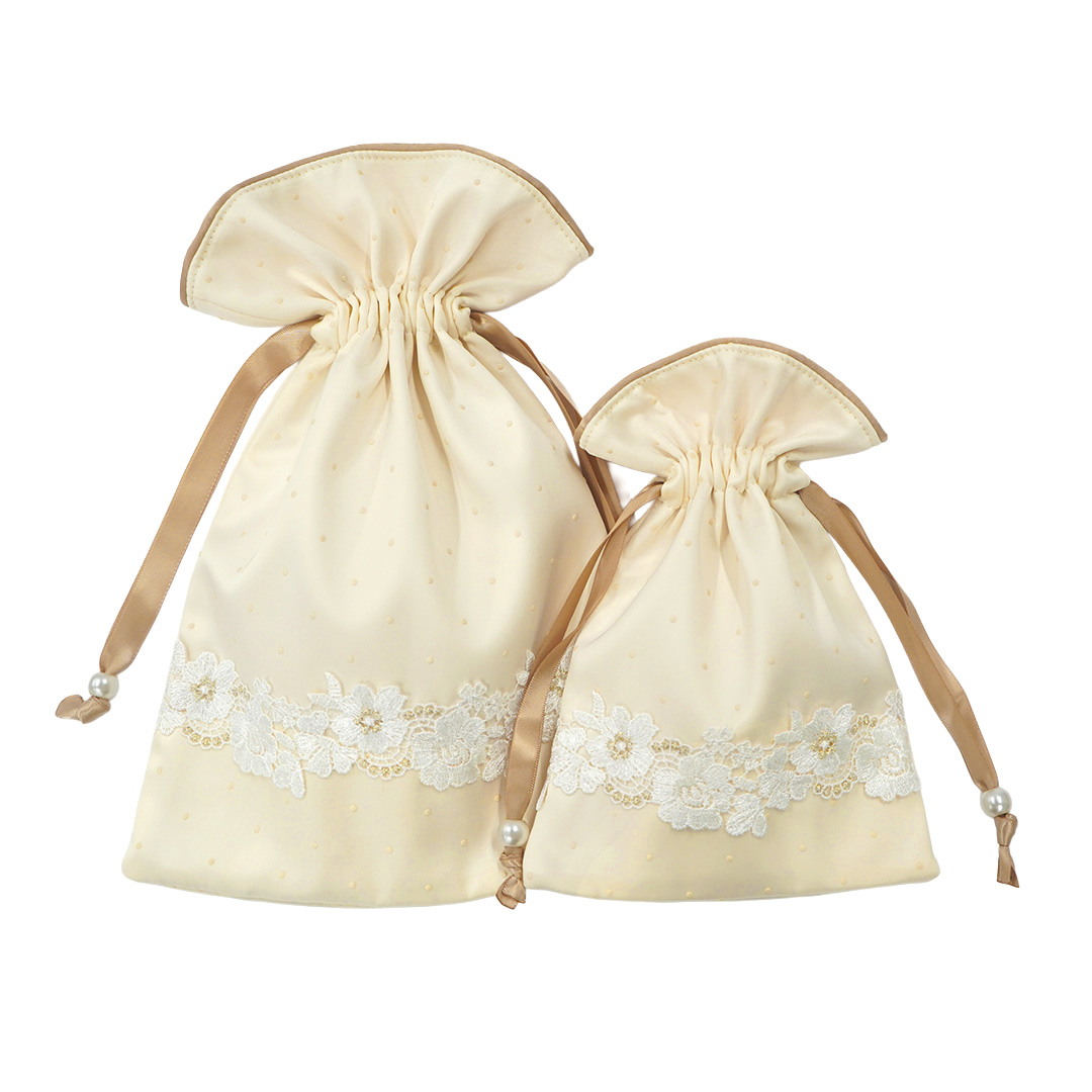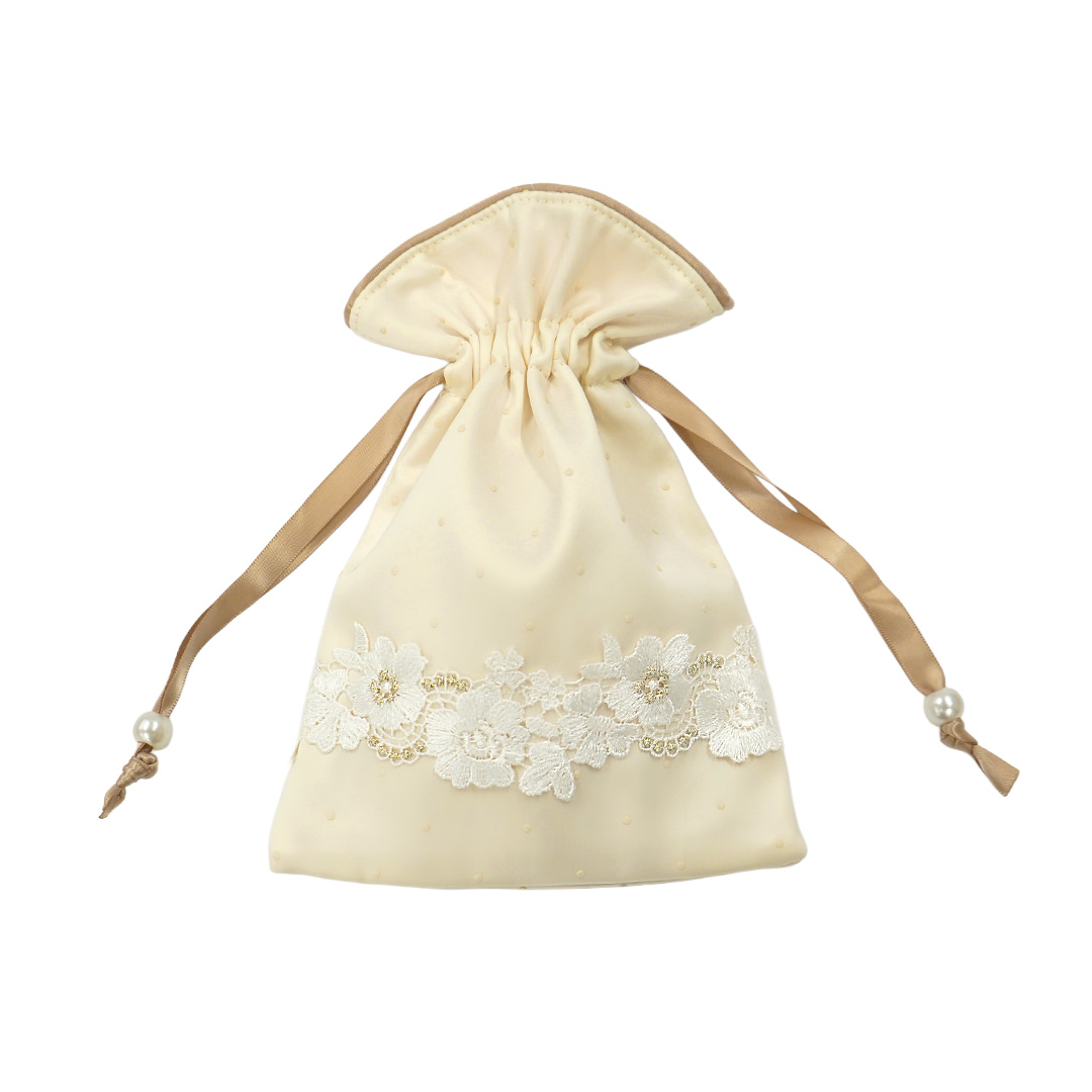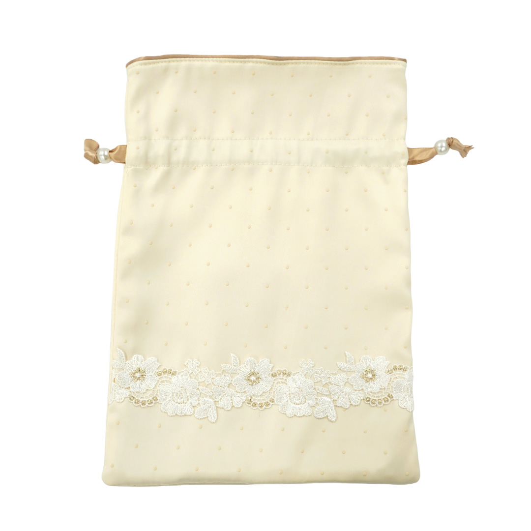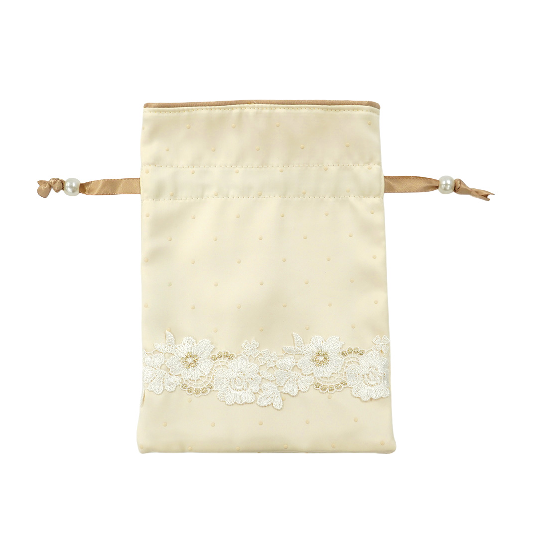 エレガントローズサテン小物/巾着2点セット(アイボリー)