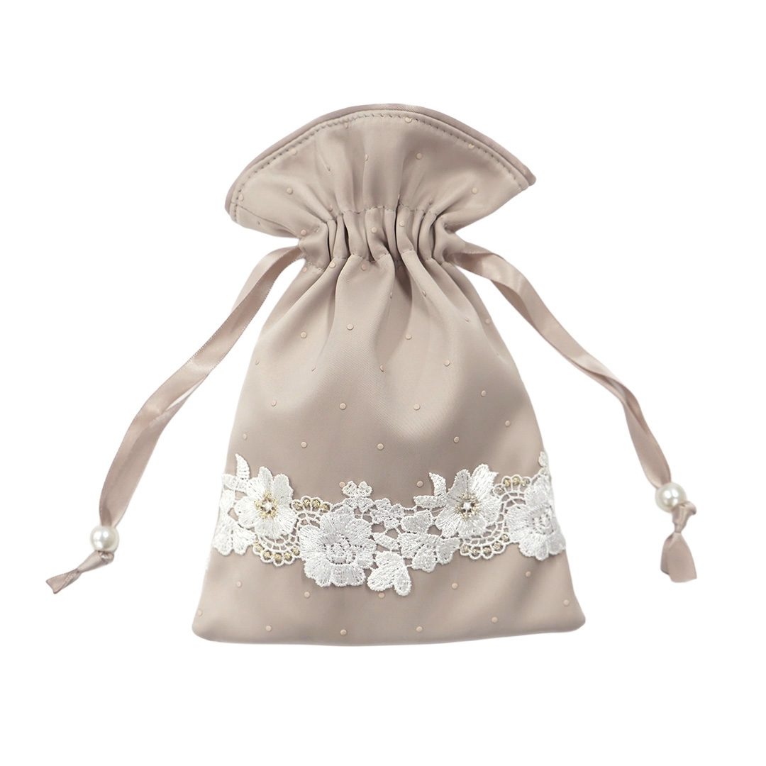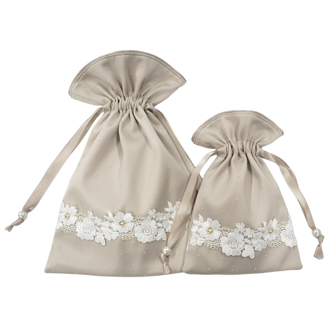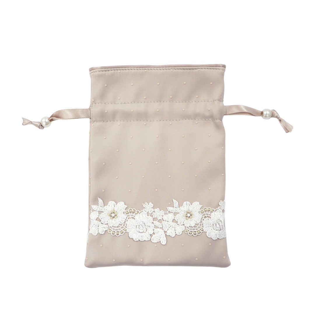 エレガントローズサテン小物/巾着2点セット(ピンクベージュ)