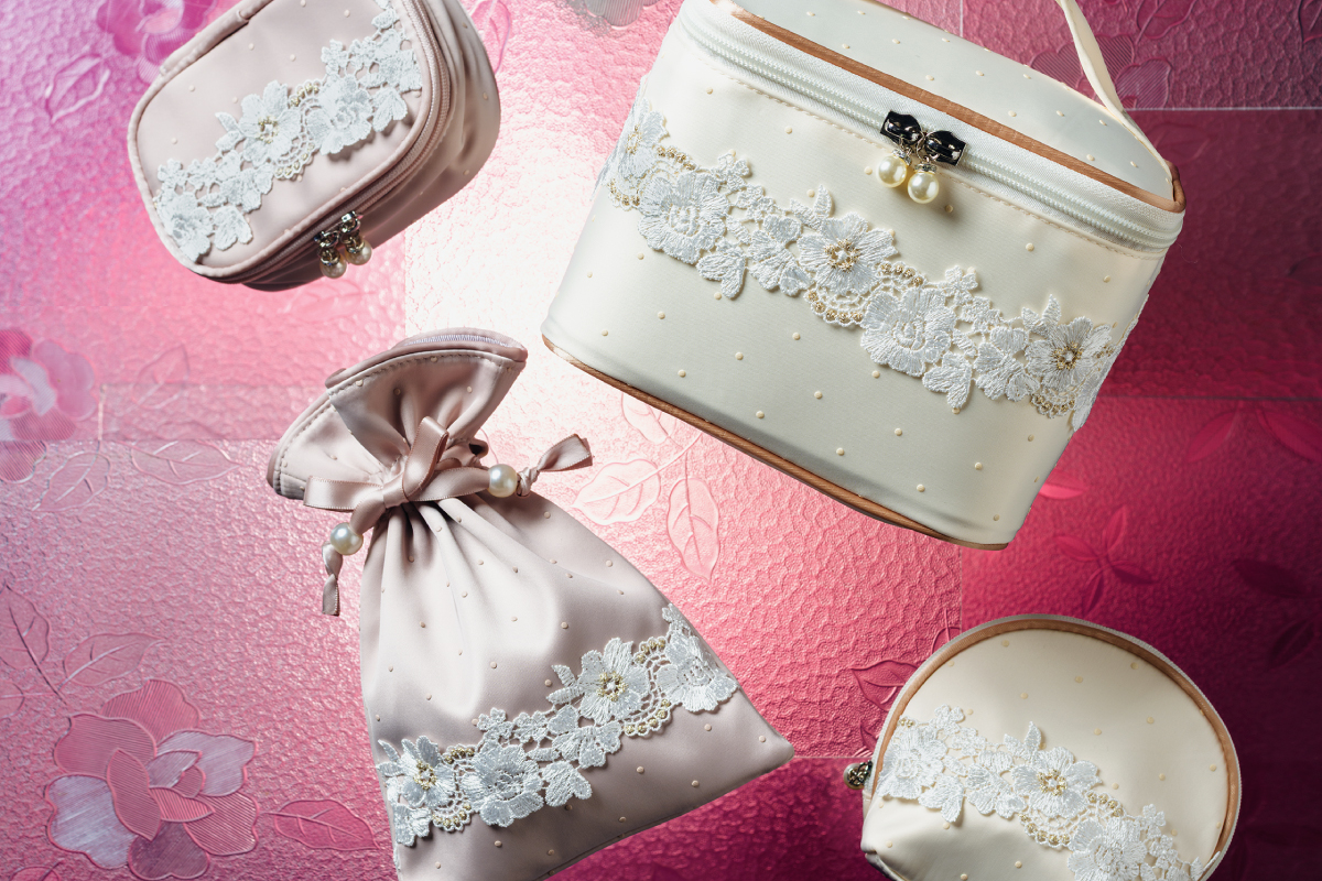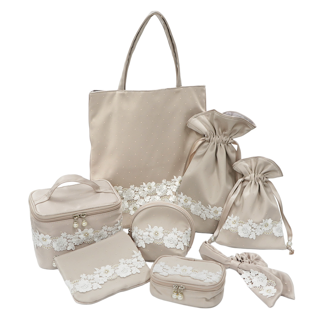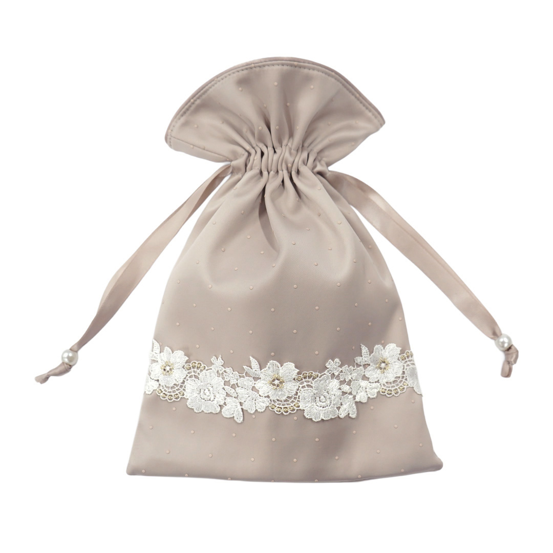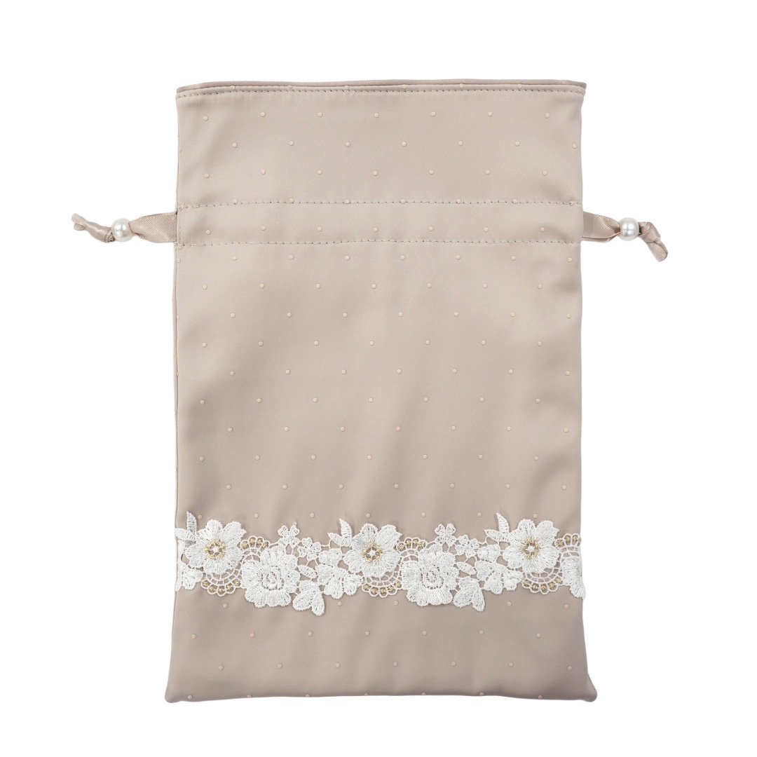 エレガントローズサテン小物/巾着2点セット(ピンクベージュ)