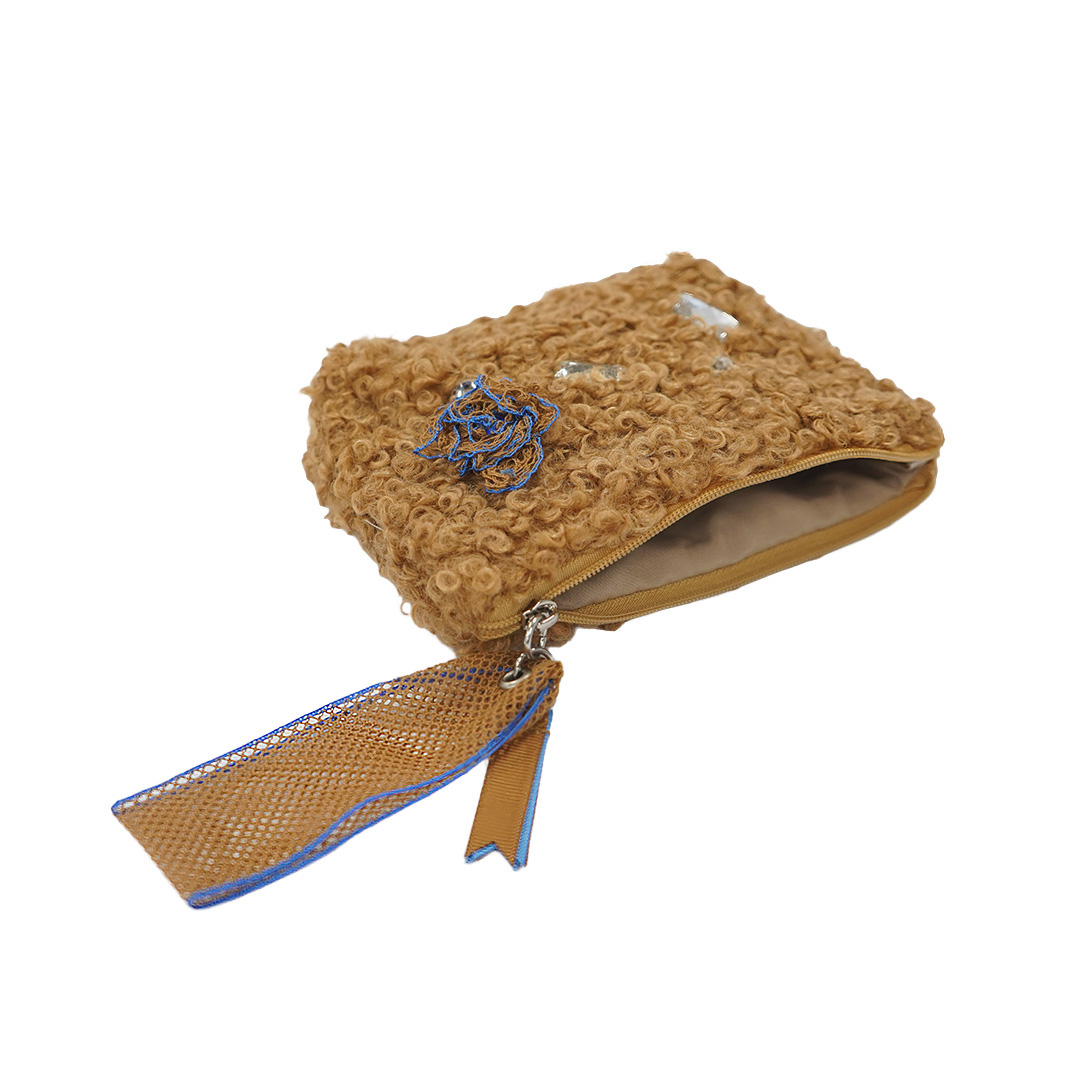 フルリーエコファー小物/マチ付ポーチ(ブラウン)