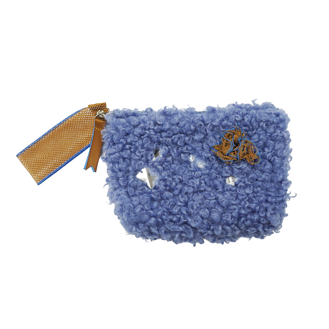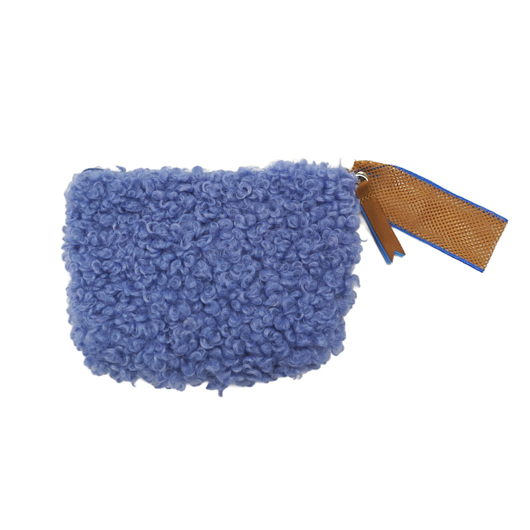 フルリーエコファー小物/マチ付ポーチ(ブルー)