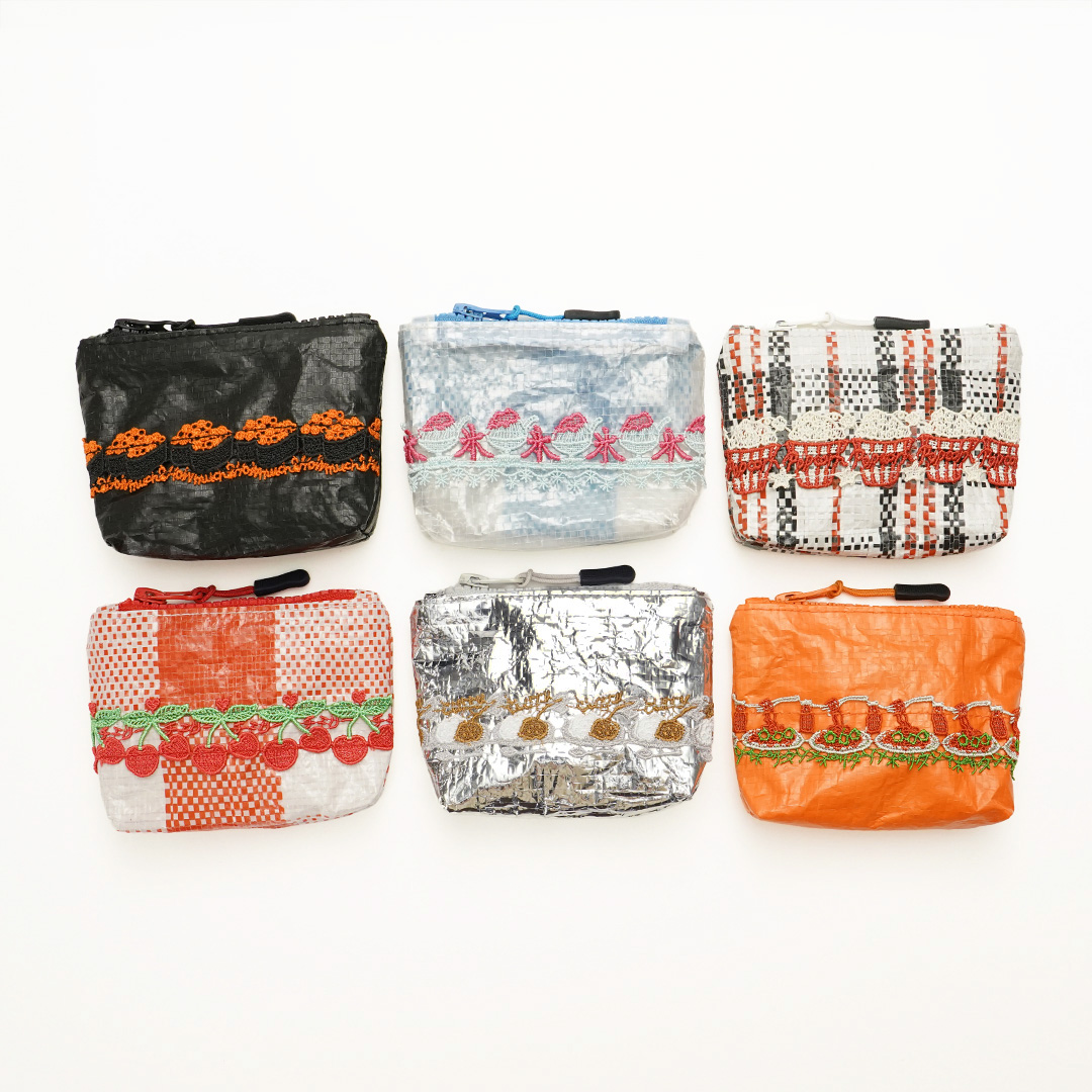 人気のレースがほどこされた新しい素材のポーチが新登場しました。 どれも食欲がそそられる食べ物にまつわるレースばかり。 さらに、よーく見てみるとファスナーがアルファベットに。
