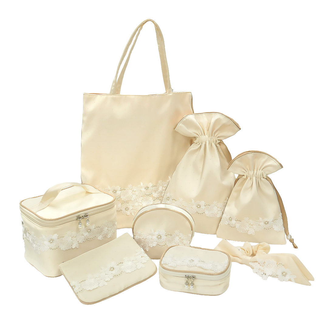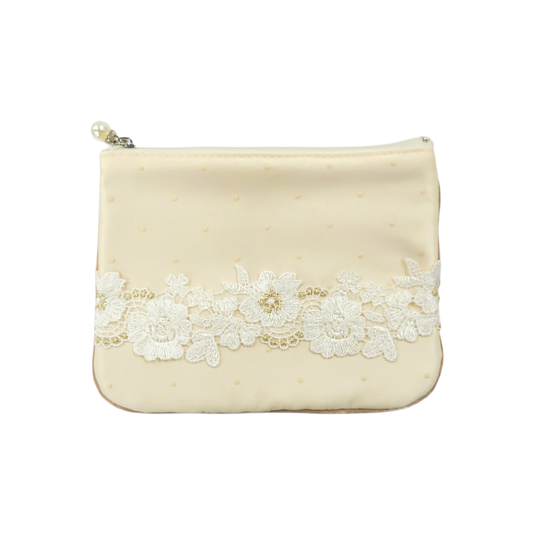 エレガントローズサテン小物/フラットポーチ(アイボリー)