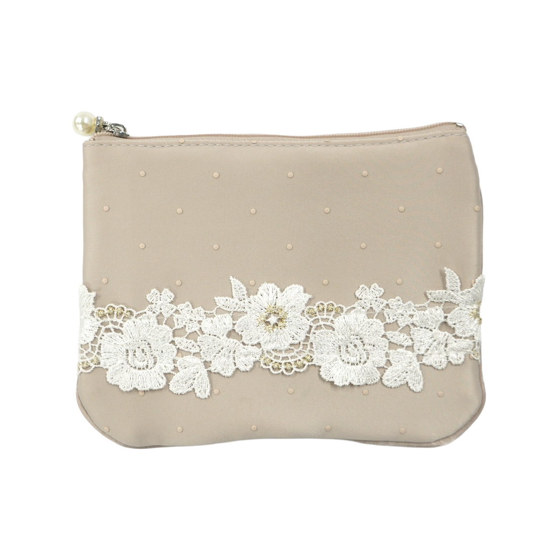 エレガントローズサテン小物/フラットポーチ(ピンクベージュ)