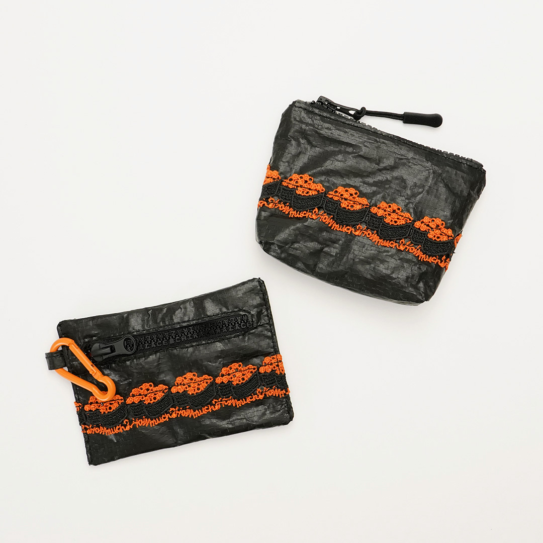 人気のレースがほどこされた新しい素材のポーチが新登場しました。 どれも食欲がそそられる食べ物にまつわるレースばかり。 さらに、よーく見てみるとファスナーがアルファベットに。