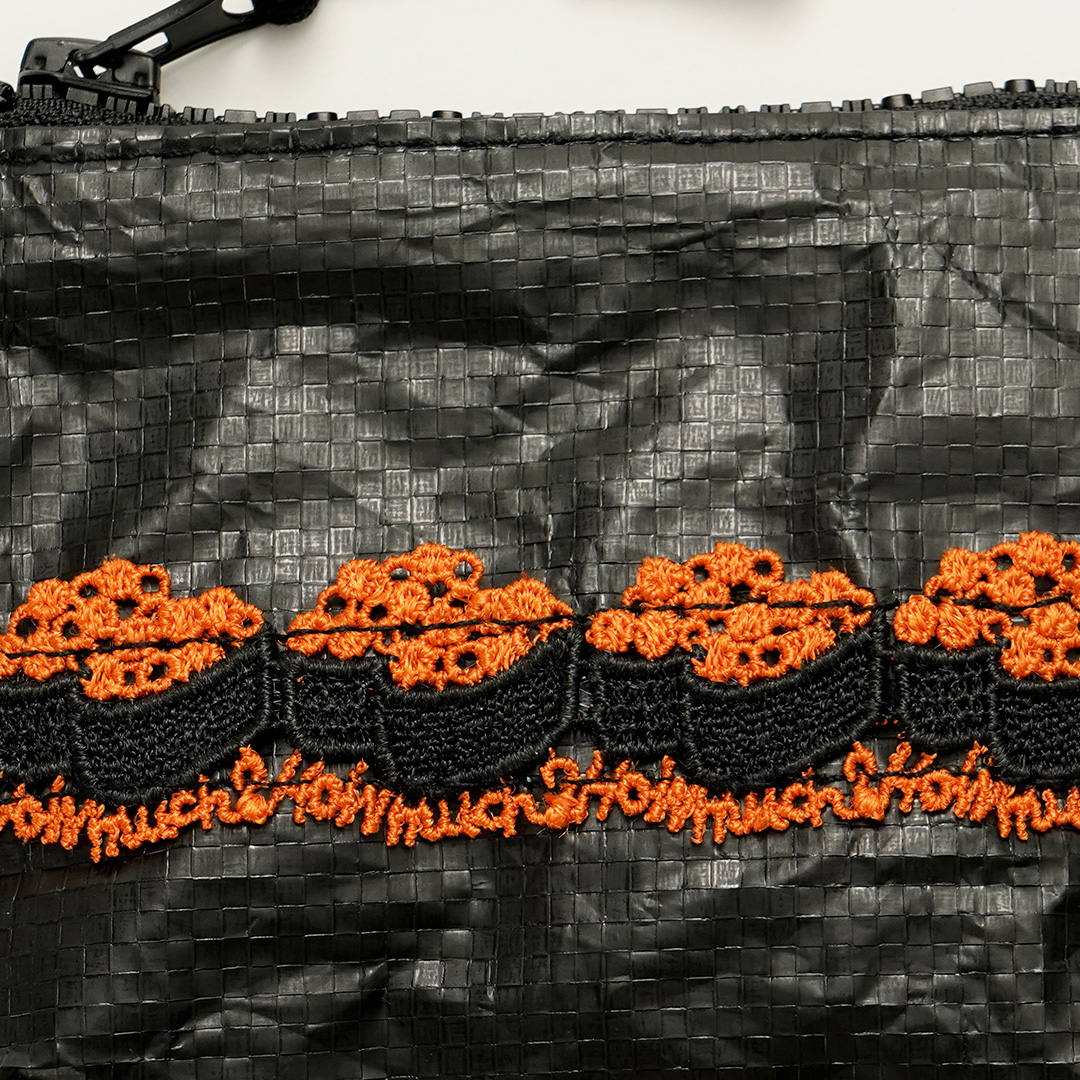 人気のレースがほどこされた新しい素材のポーチが新登場しました。 どれも食欲がそそられる食べ物にまつわるレースばかり。 さらに、よーく見てみるとファスナーがアルファベットに。