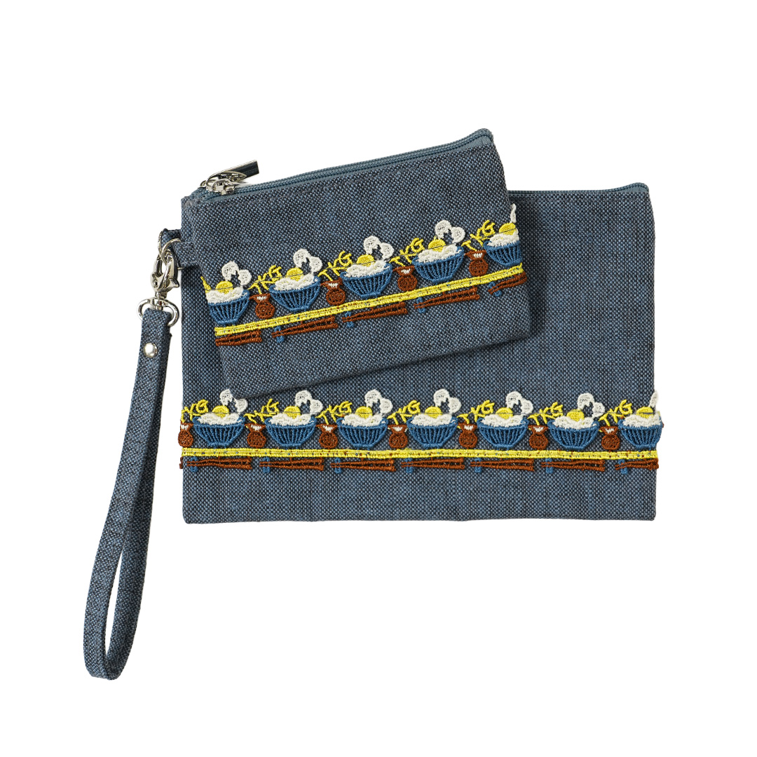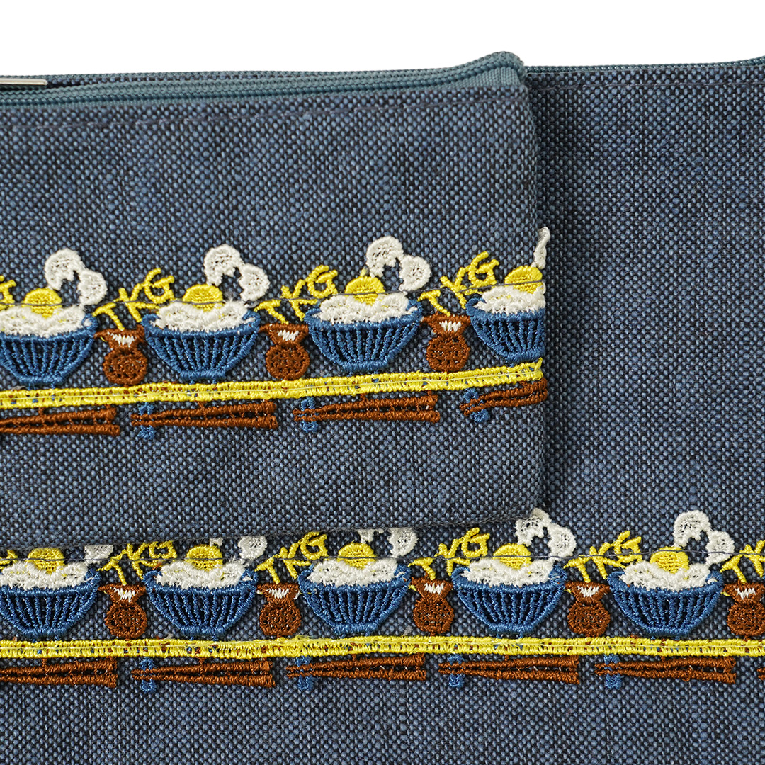 リネン小物/ダブルポーチ(卵かけご飯)