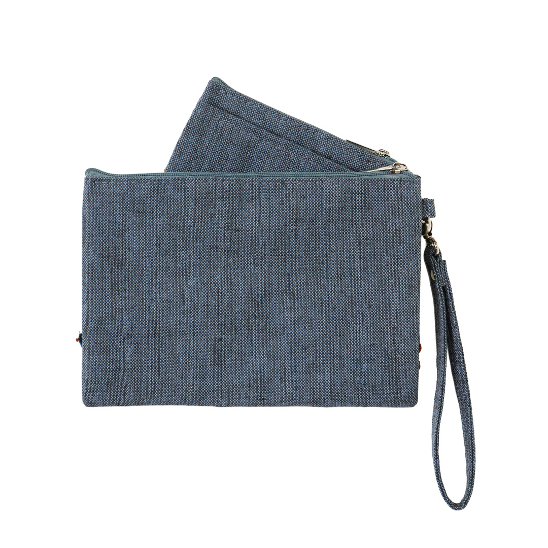 大きいポーチには通帳やスマホ、エコバッグなどを入れて、手からぶら下げて持ち歩くのもおすすめです。