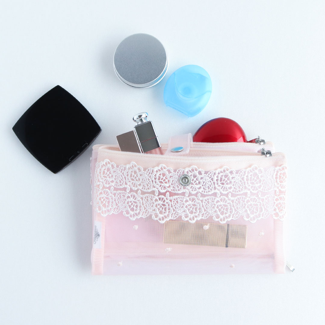 モダンローズメッシュ小物/マルチポーチ(ピンク)