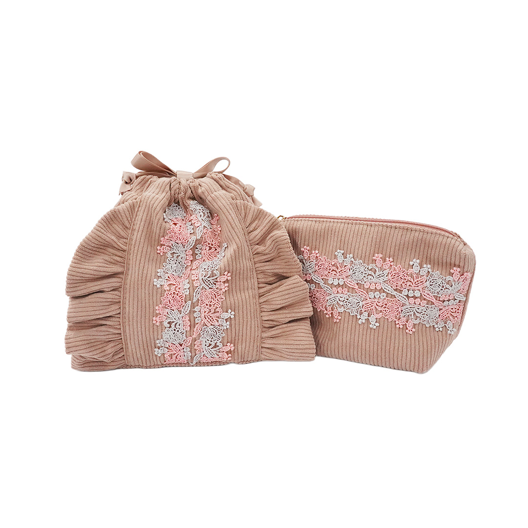 今回は巾着とポーチ、それぞれ2色ずつご用意いたしました。