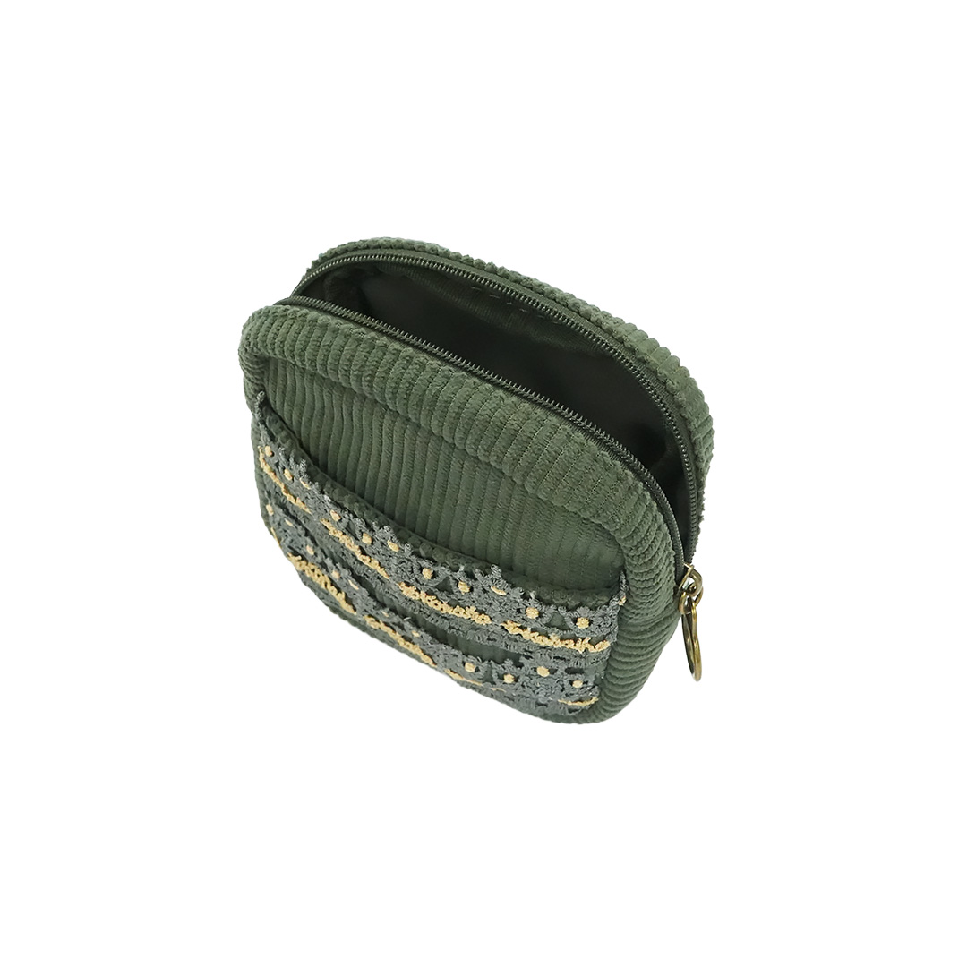 生地はコーデュロイ素材を使用し、寒い冬にはぴったりな肌触りです。ハンドクリームやリップクリームなど、小物が増えがちなこの時期に可愛く収納できちゃいます。