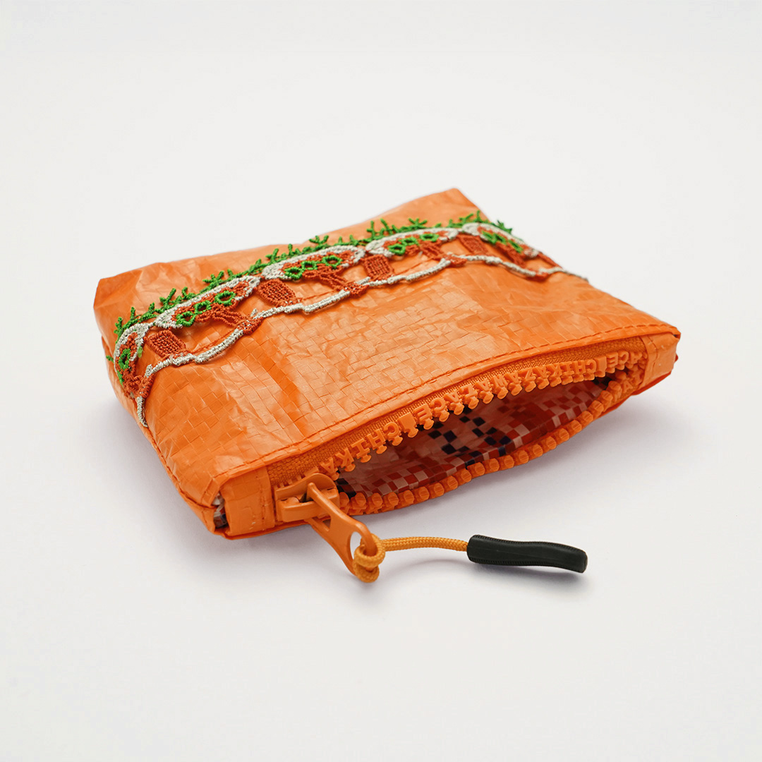 人気のレースがほどこされた新しい素材のポーチが新登場しました。 どれも食欲がそそられる食べ物にまつわるレースばかり。 さらに、よーく見てみるとファスナーがアルファベットに。