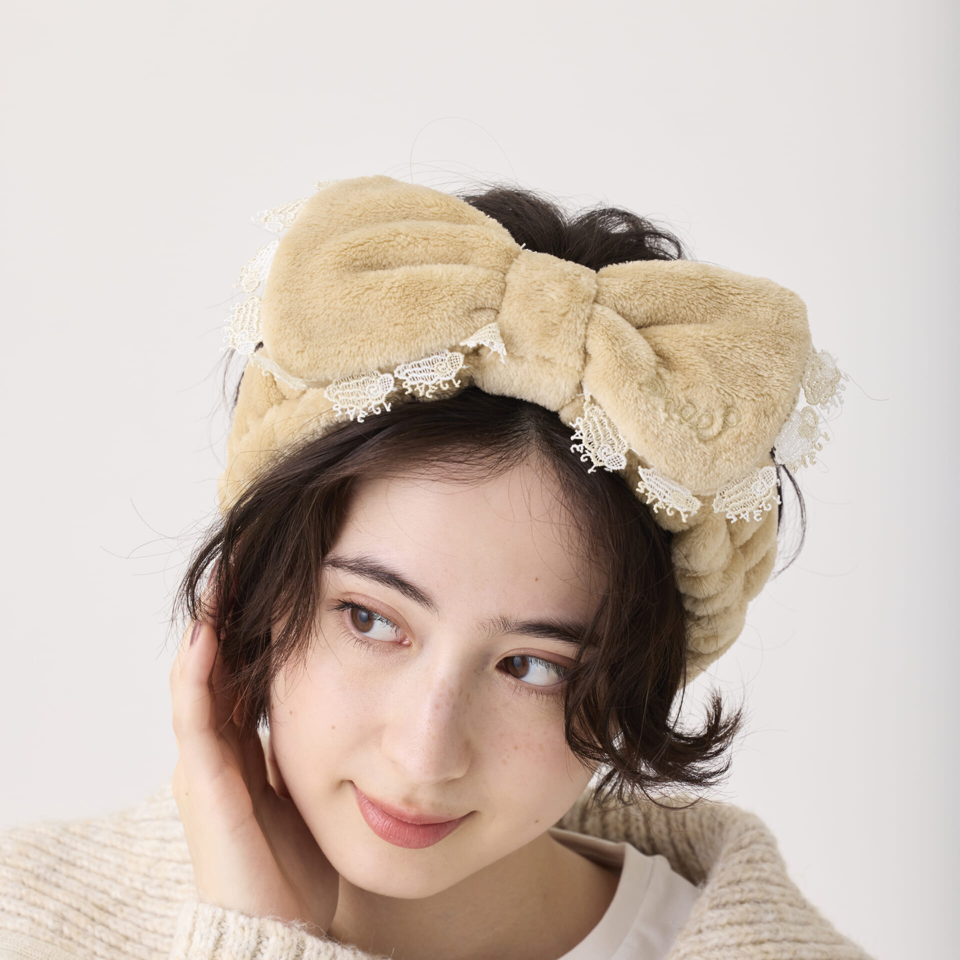 ふわもこ小物/リボンヘアバンド(ベージュ)