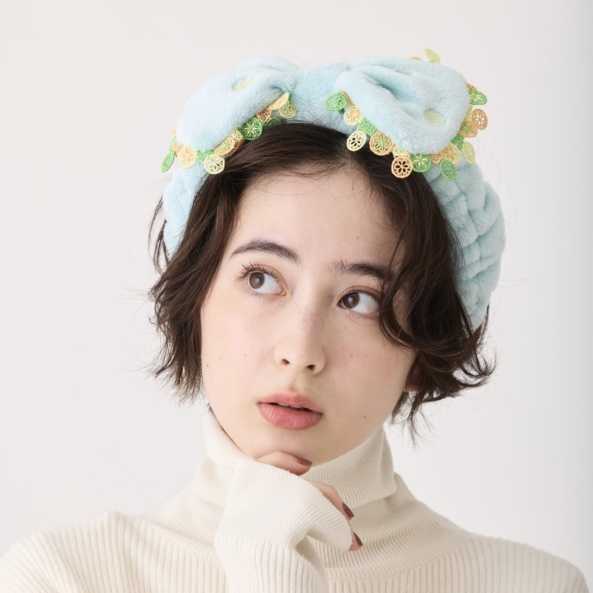 ふっくらとした大きなリボンに、シトラスのレースがあしらわれたヘアバンド。