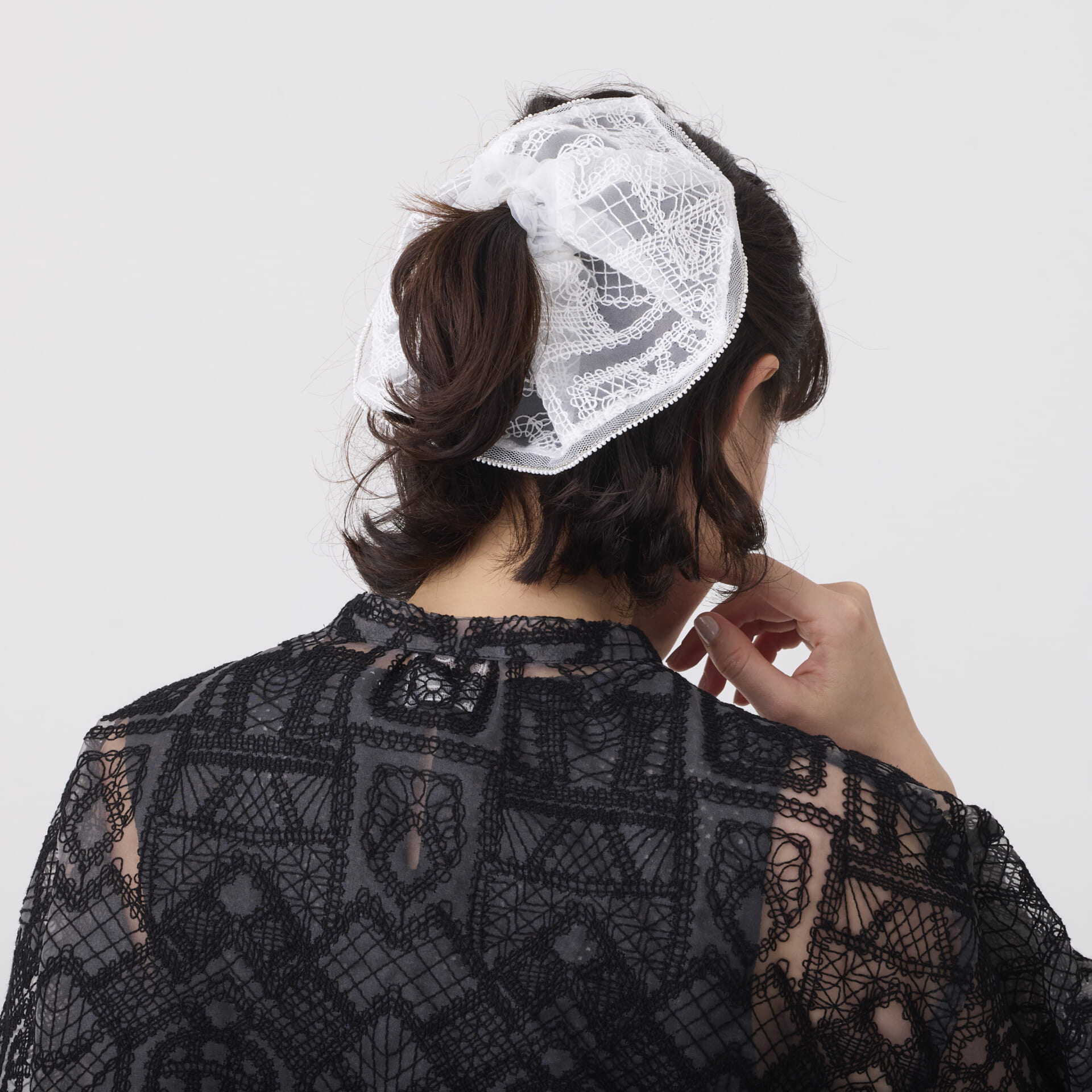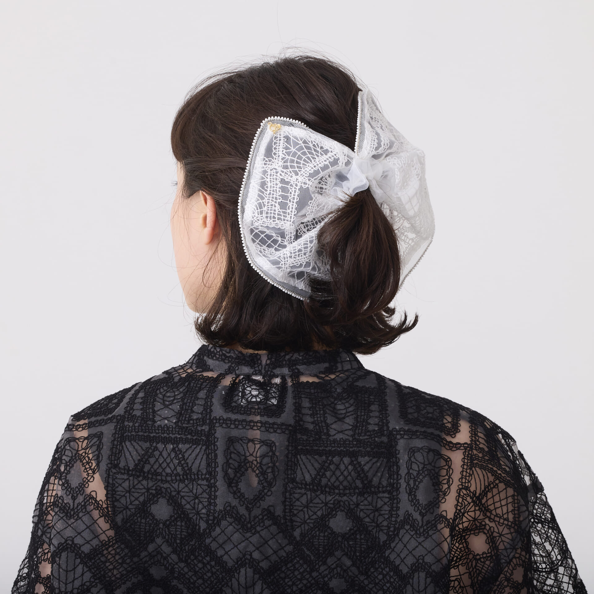 ビッグなシルエットのシュシュが登場。オーガンジーレースシリーズとお揃いのコーデが楽しめます。