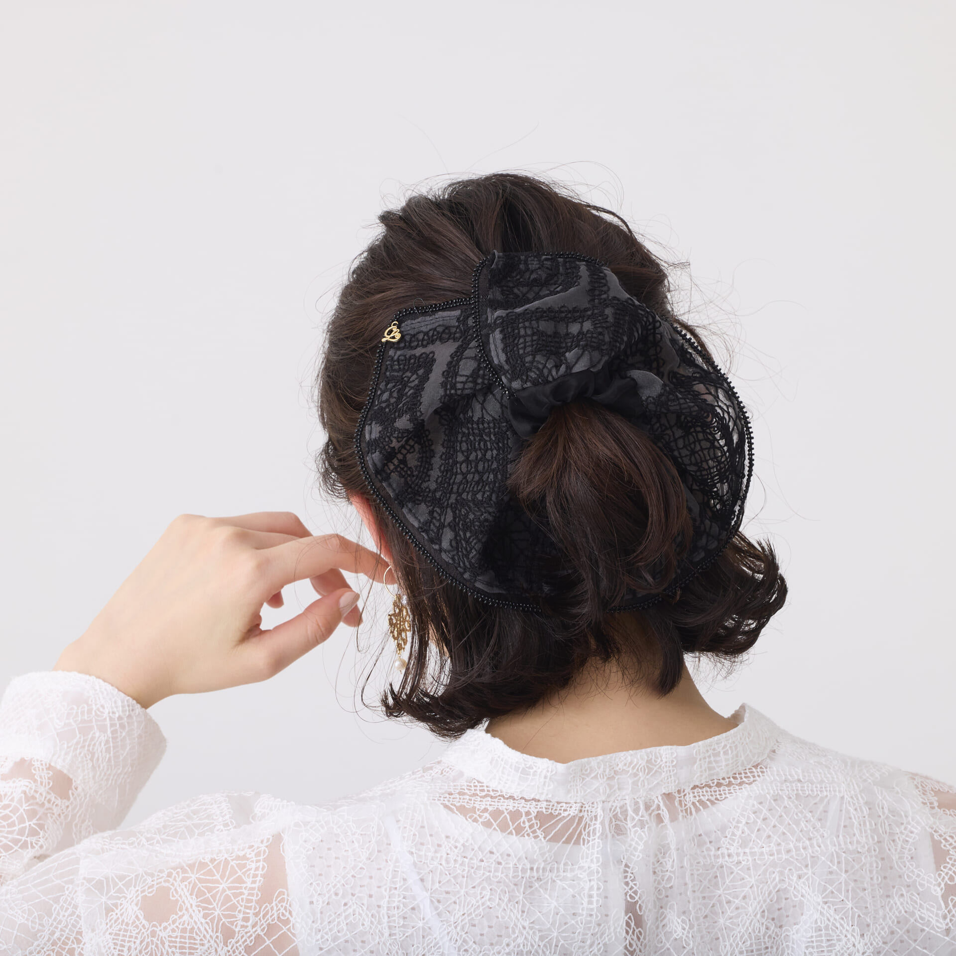 ビッグなシルエットのシュシュが登場。オーガンジーレースシリーズとお揃いのコーデが楽しめます。