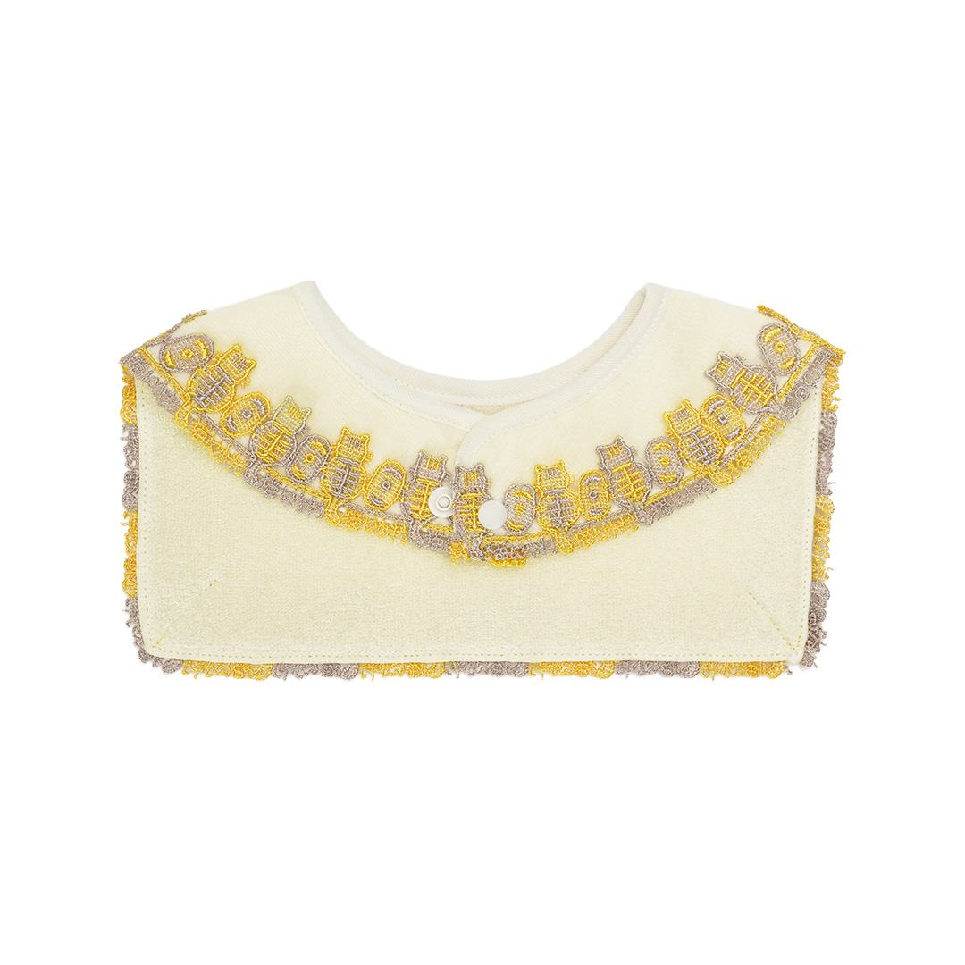 ハッピーレースベビースタイ/猫に小判(アイボリー)