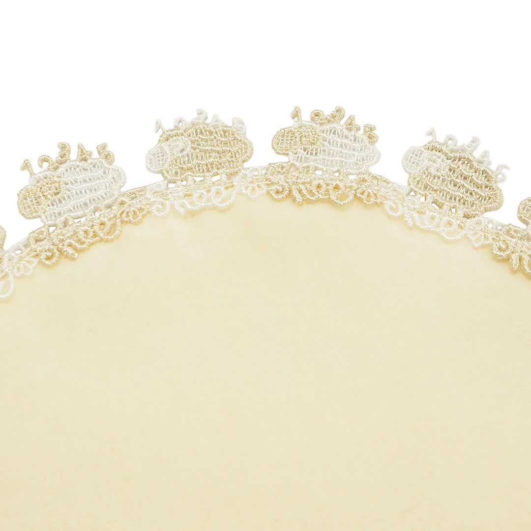 シープの誕生は、不眠症がちで辛いなと思っていた時に思いついたモチーフ。同じように眠れなくて辛い思いをしている方にエールを送りたくて、羊が一匹、二匹…と数える数字もレースにデザインいたしました。ホワイトとクリームが、安心するやさしいカラーです。
