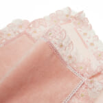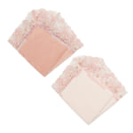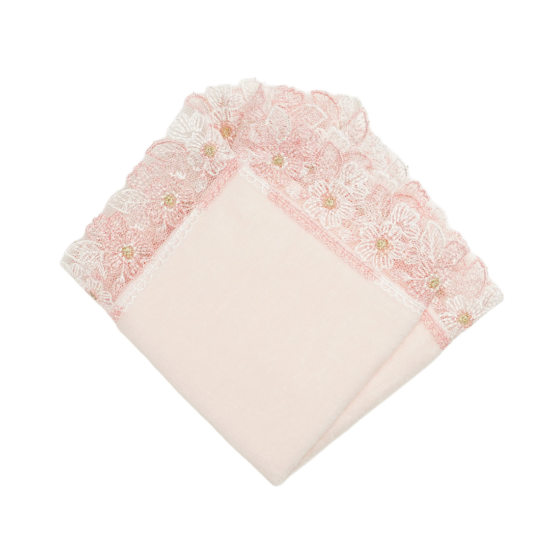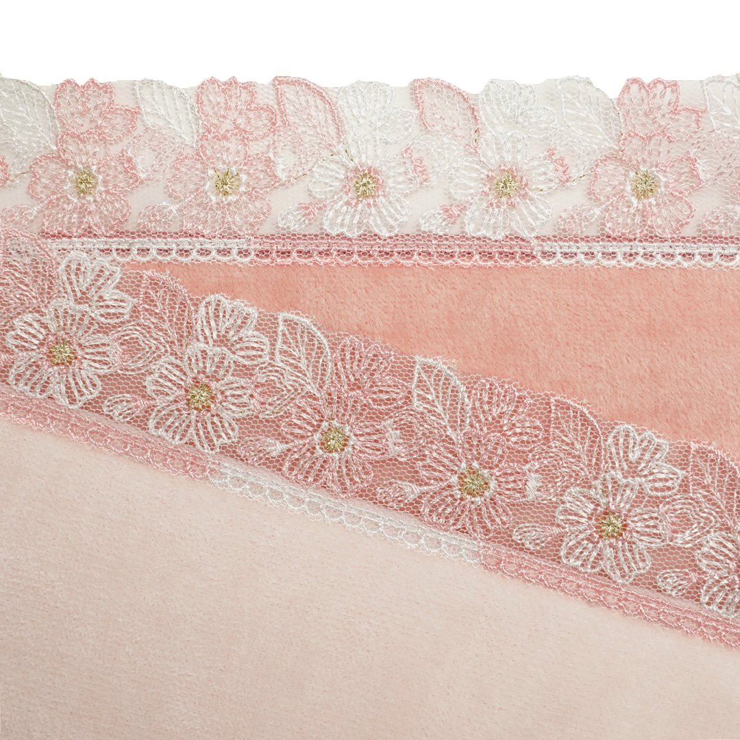 手元に春が舞い降りてきたような桜のレース。やわらかなチュールに淡いさくら色のピンクとホワイト糸で織りなすレースは、清楚で可憐。花芯のさりげない金糸がエレガントさを醸しだします。桜の花言葉は「優美」「精神美」。