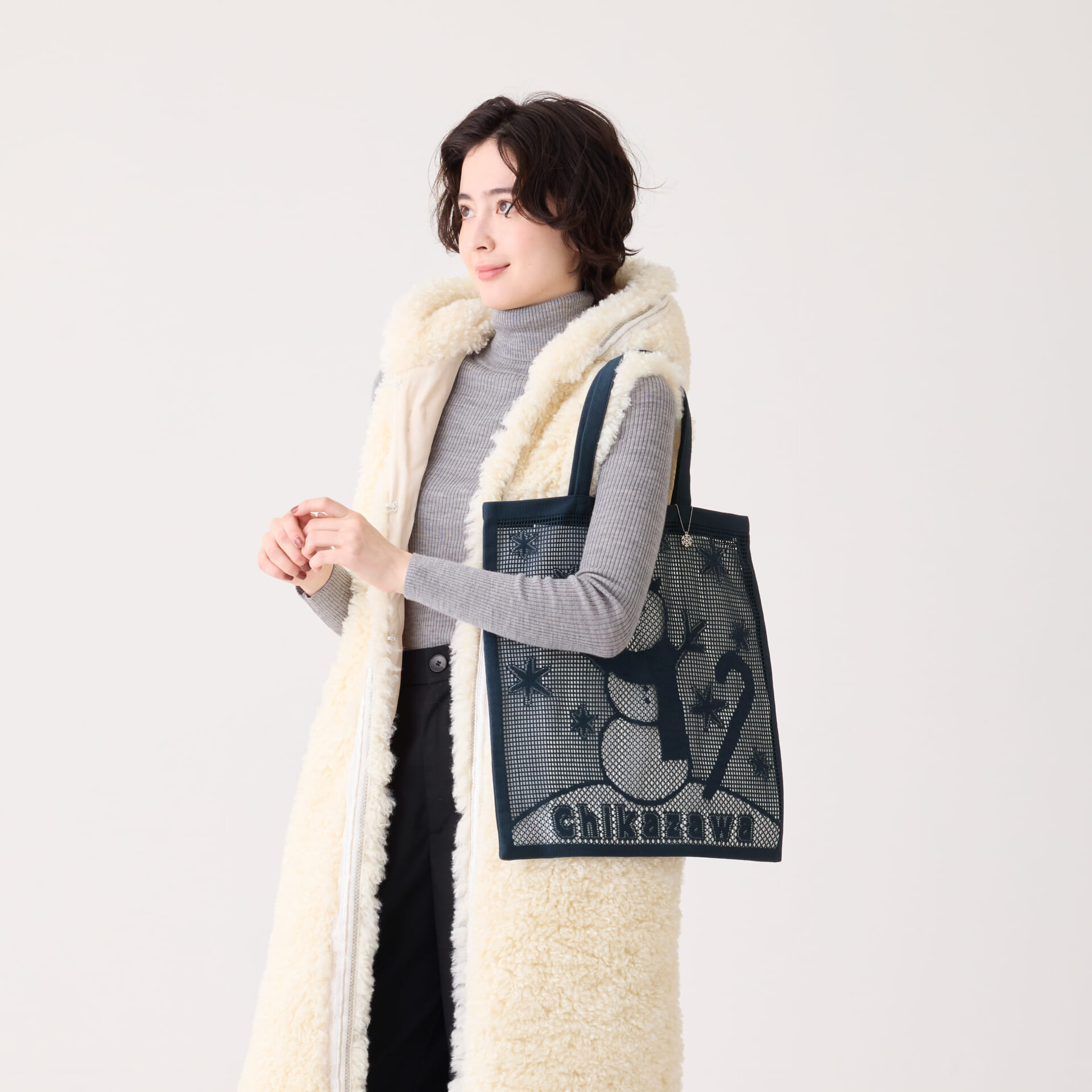 A4サイズも余裕を持って入り、全面レースの一見華奢な見た目ながら耐荷重10kgと丈夫さを兼ね備えたトートです。エコバッグとしても、サブバッグとしても、オケージョンを選びません。