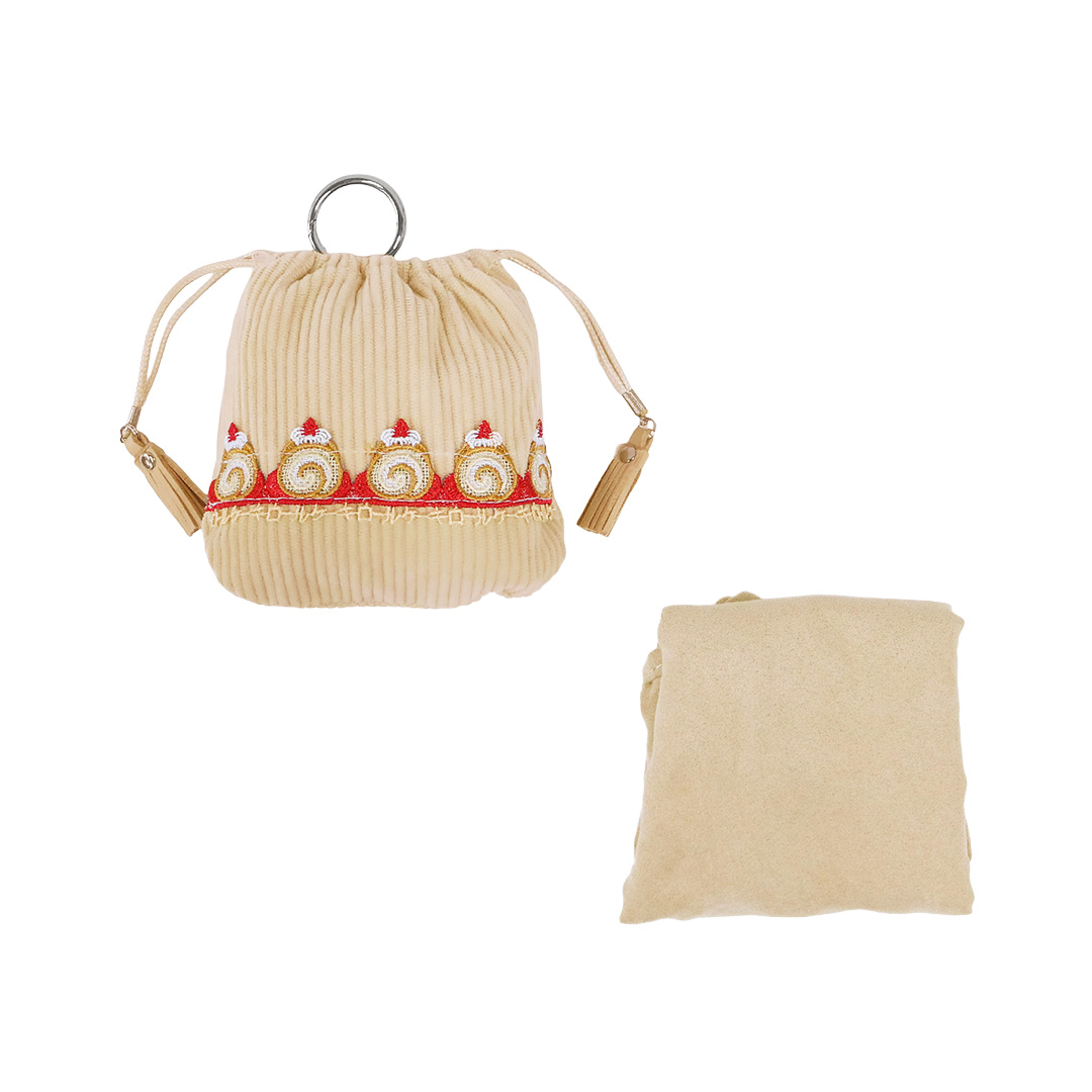 シーズンタオルハンカチとお揃いのレースをあしらった可愛い巾着ポーチがセットの「ポケッタブルエコバッグ」。