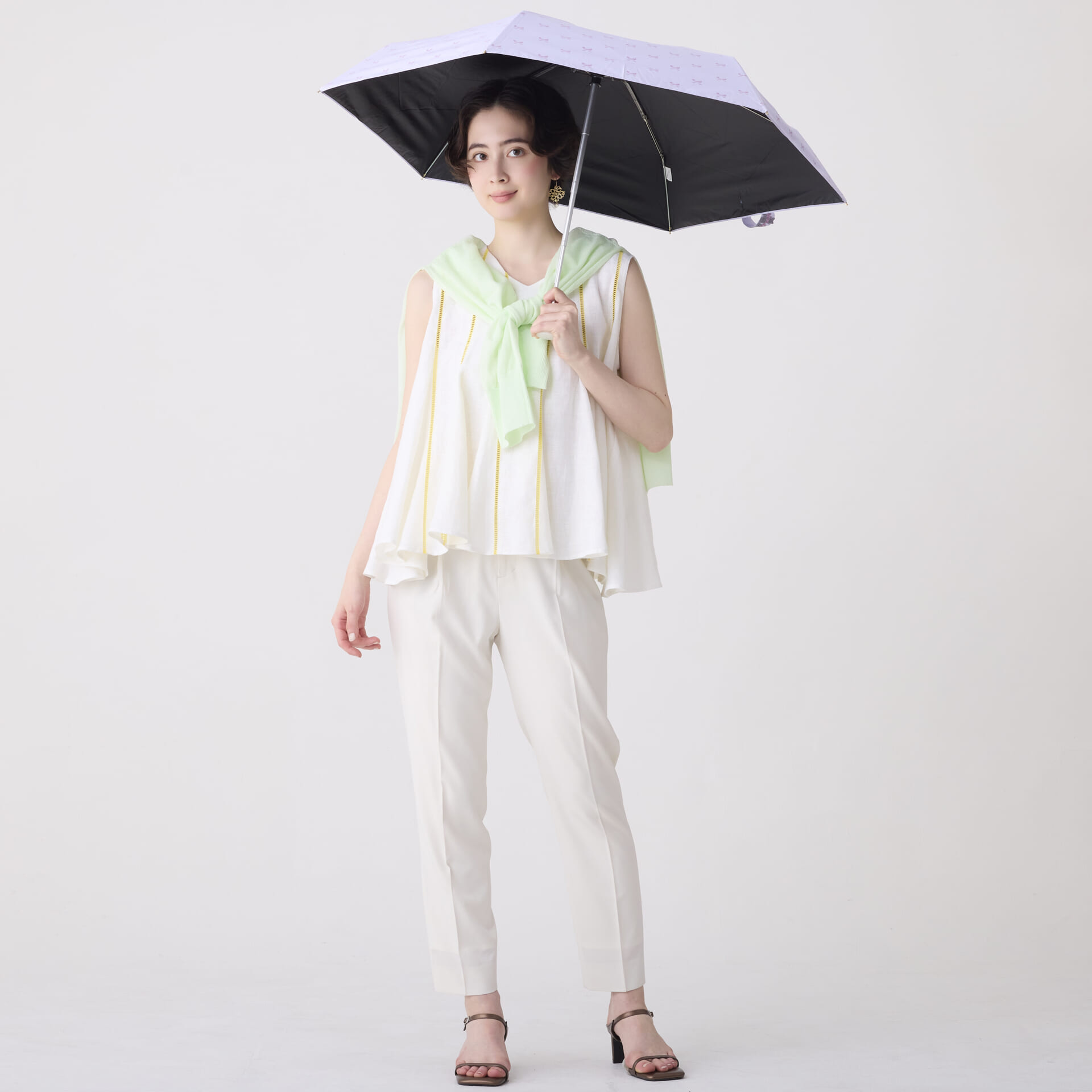 日傘としてお使いいただくことを主としていますが、はっ水加工を施しているため雨傘としてもお使いいただけます。