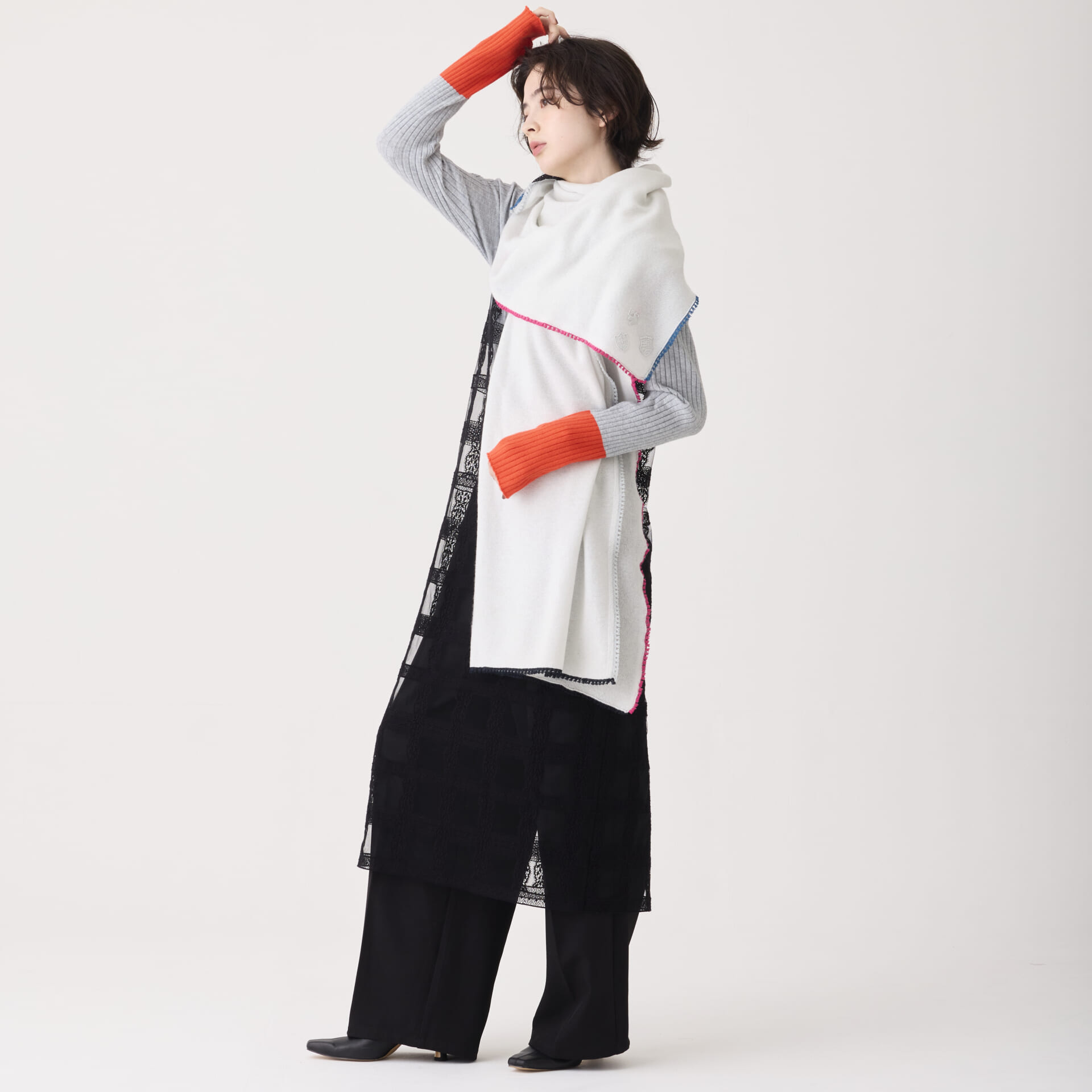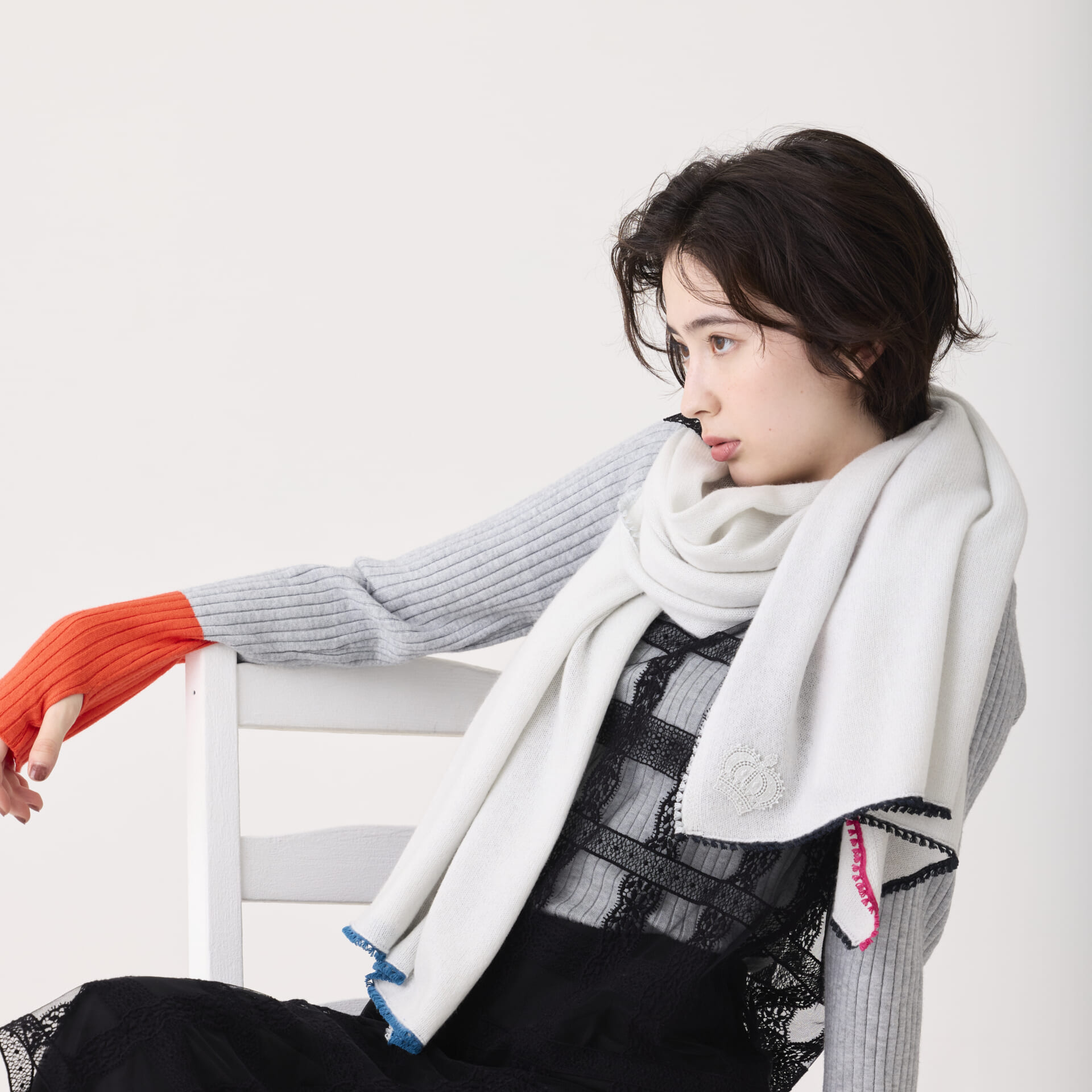 程よいボリューム感なので、巻きやすく、無造作に巻いただけでも様になる、いつもの着こなしに上品さをプラスしてくれるシリーズです。