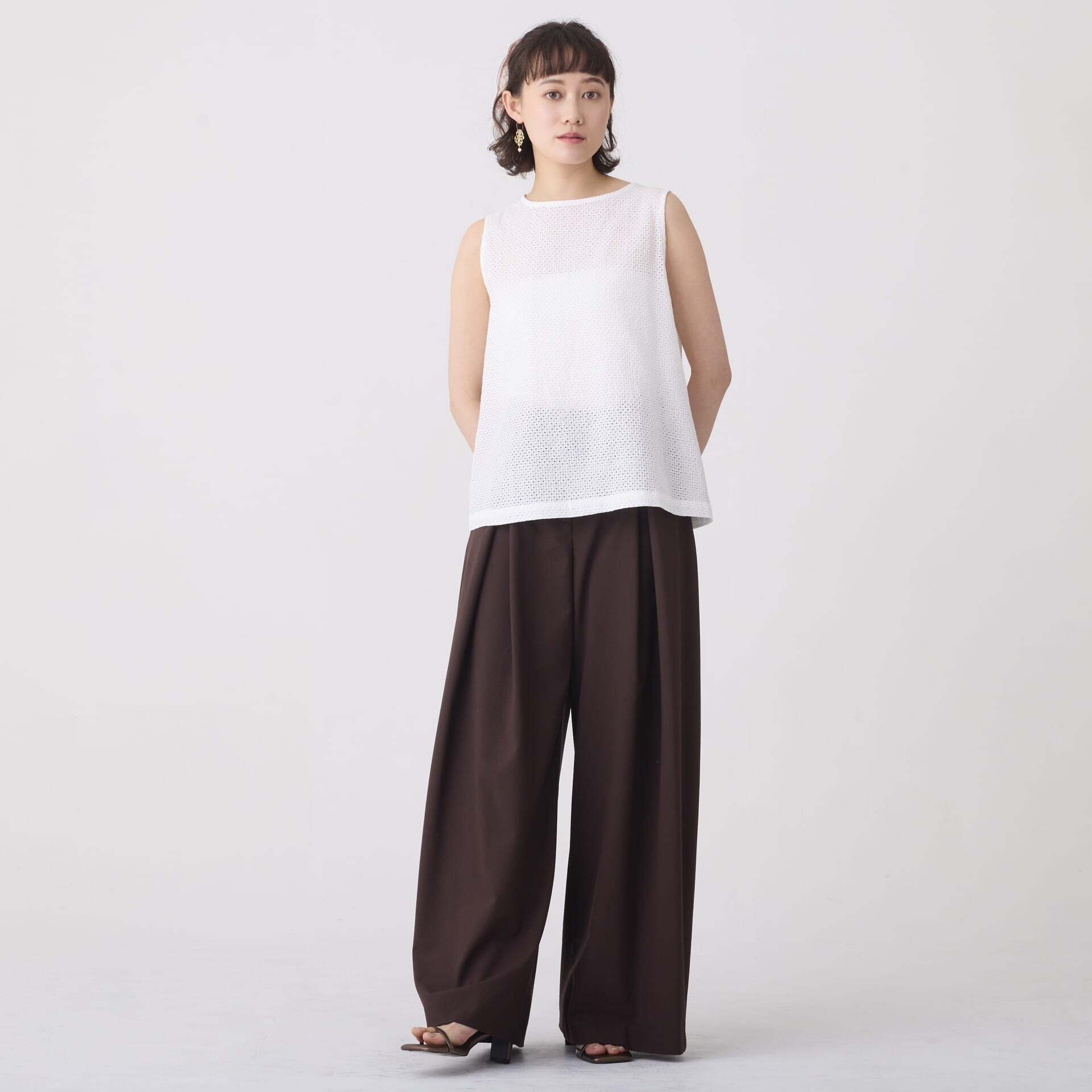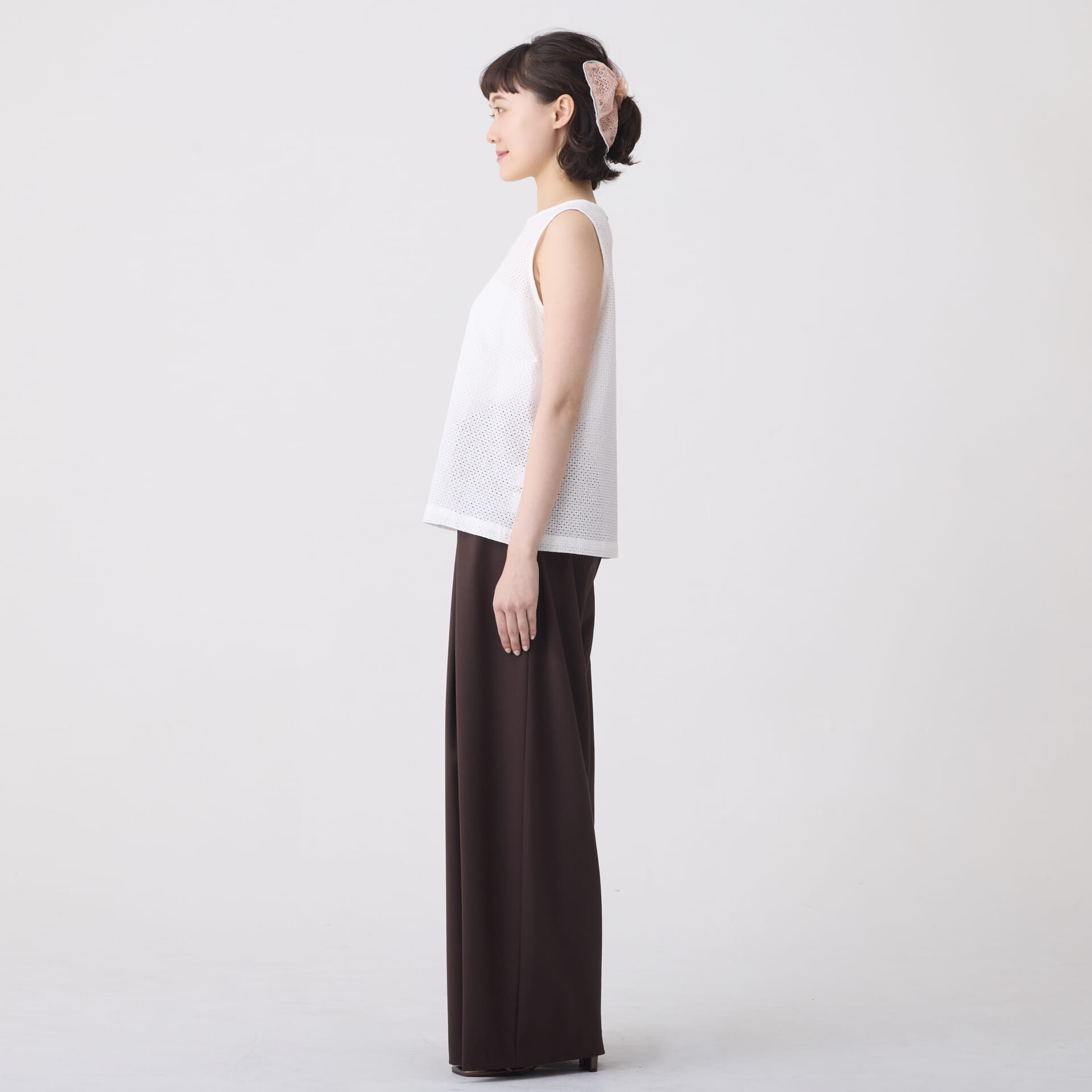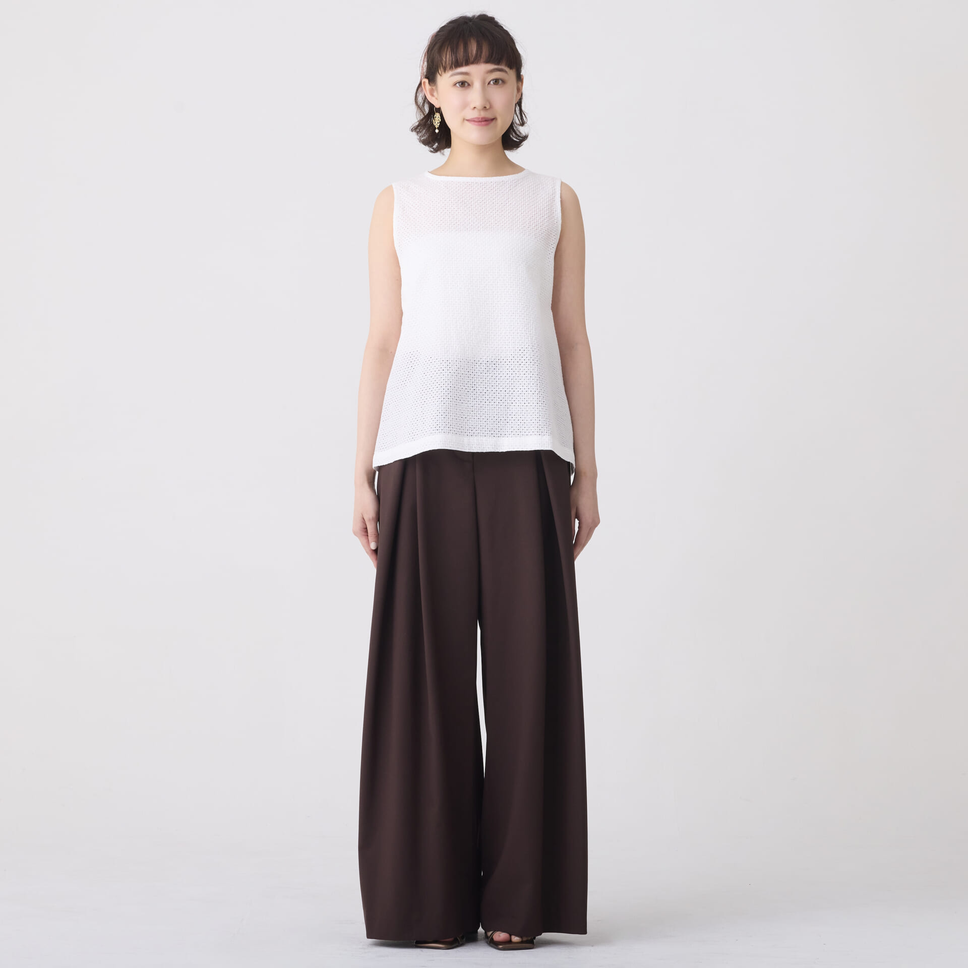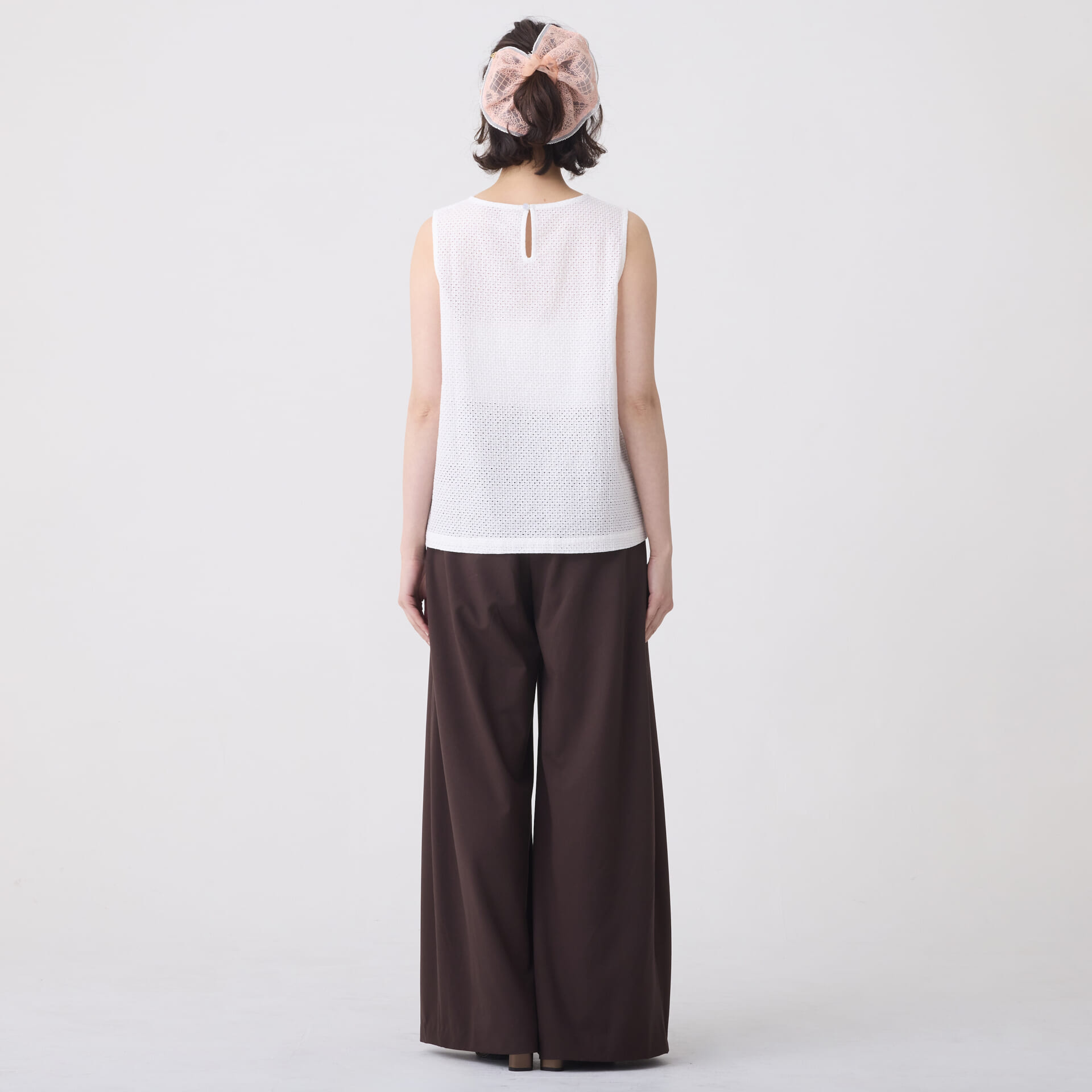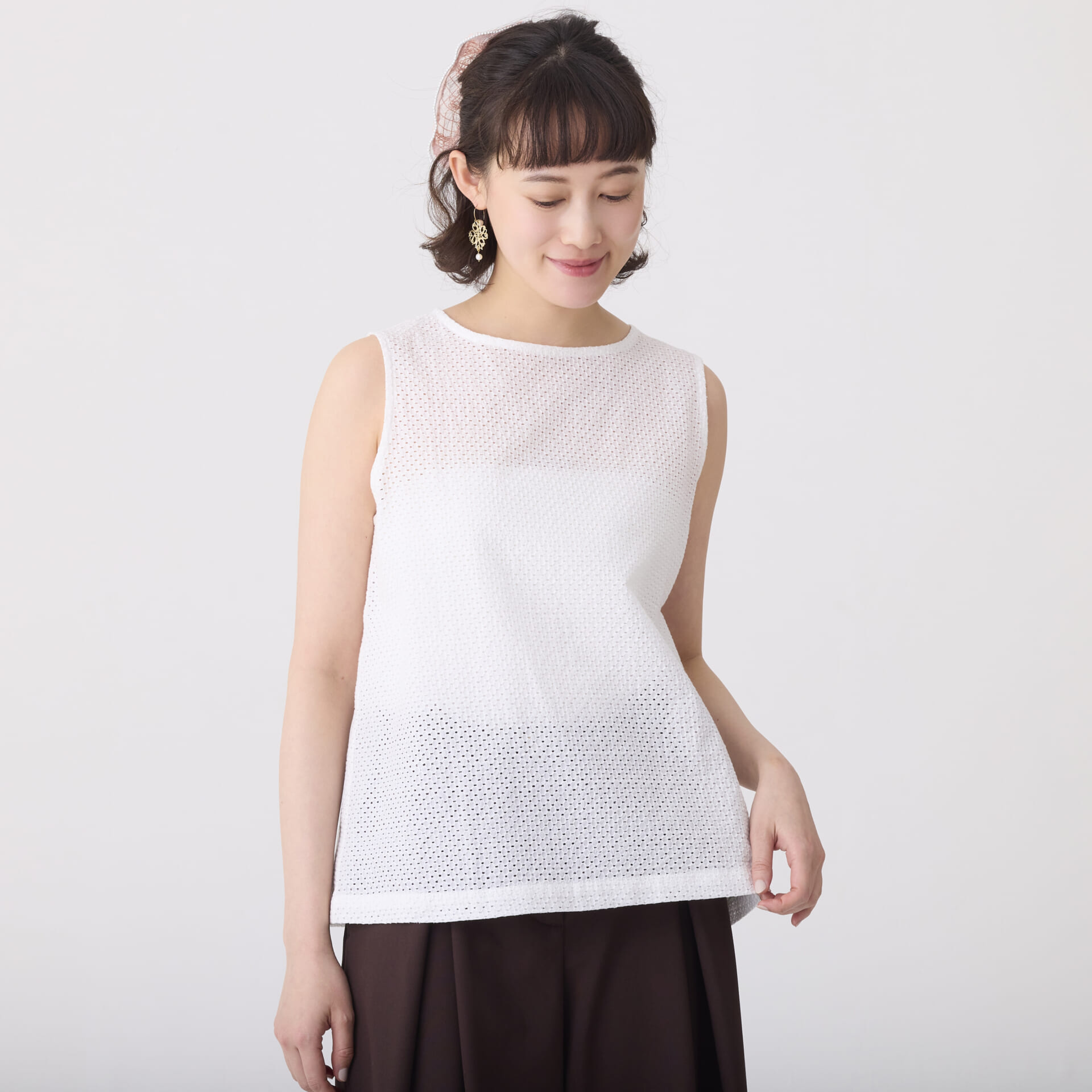 ボーラー刺繍トップス/ノースリーブインナー(ホワイト)