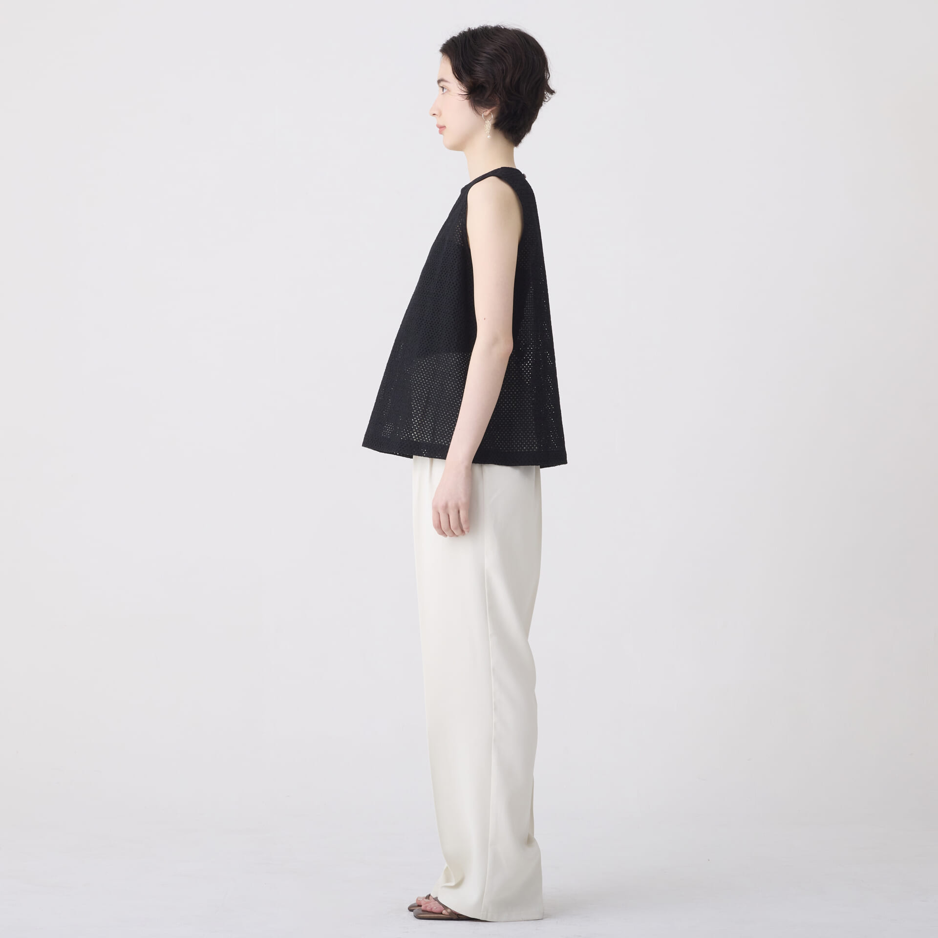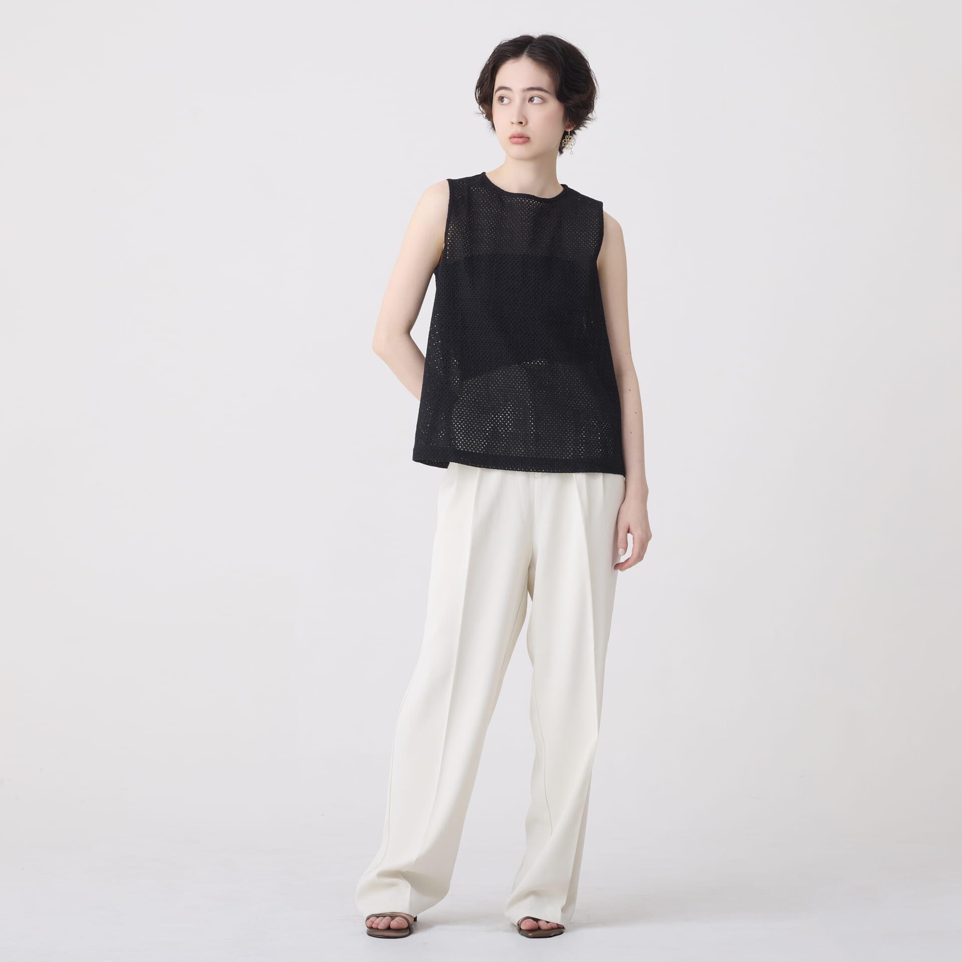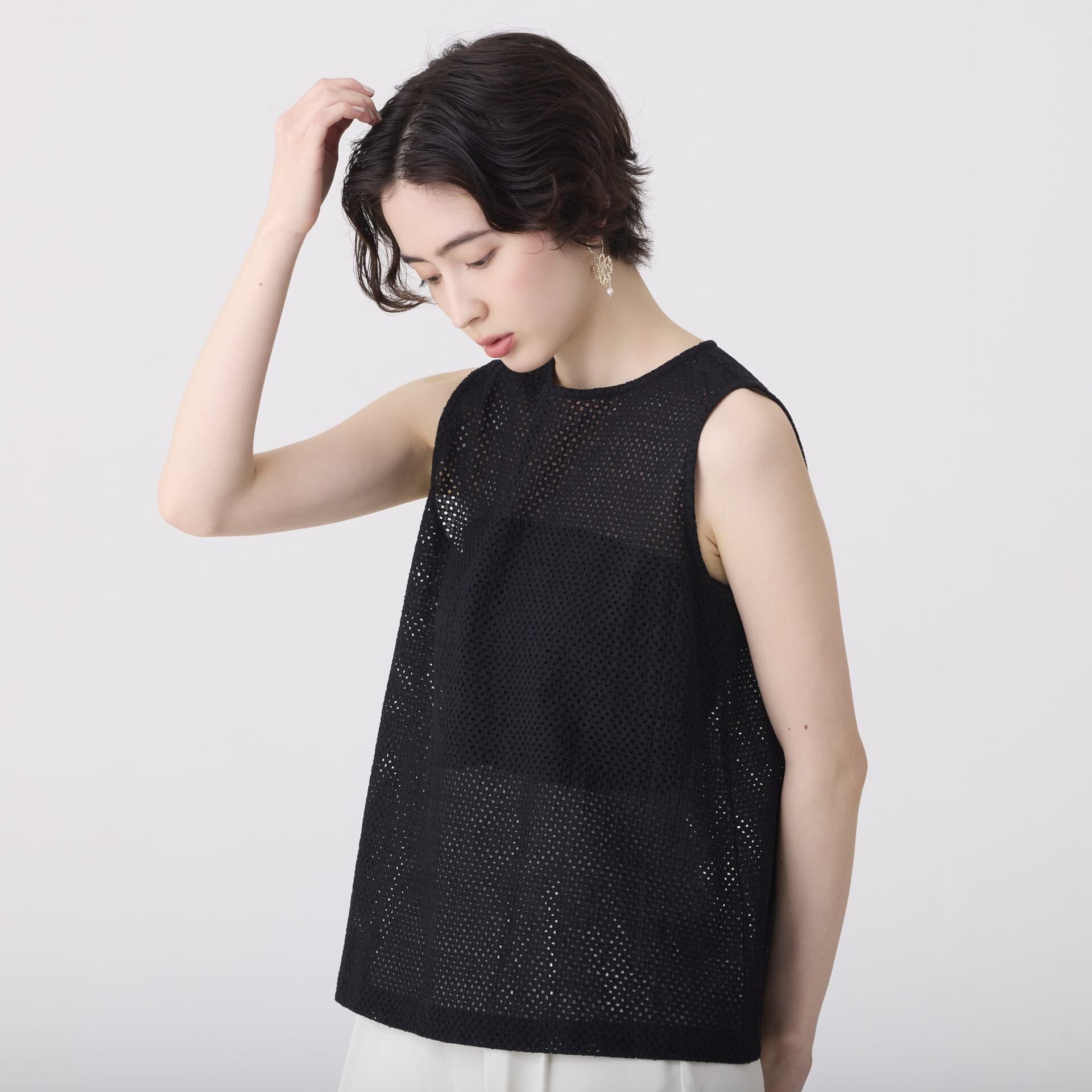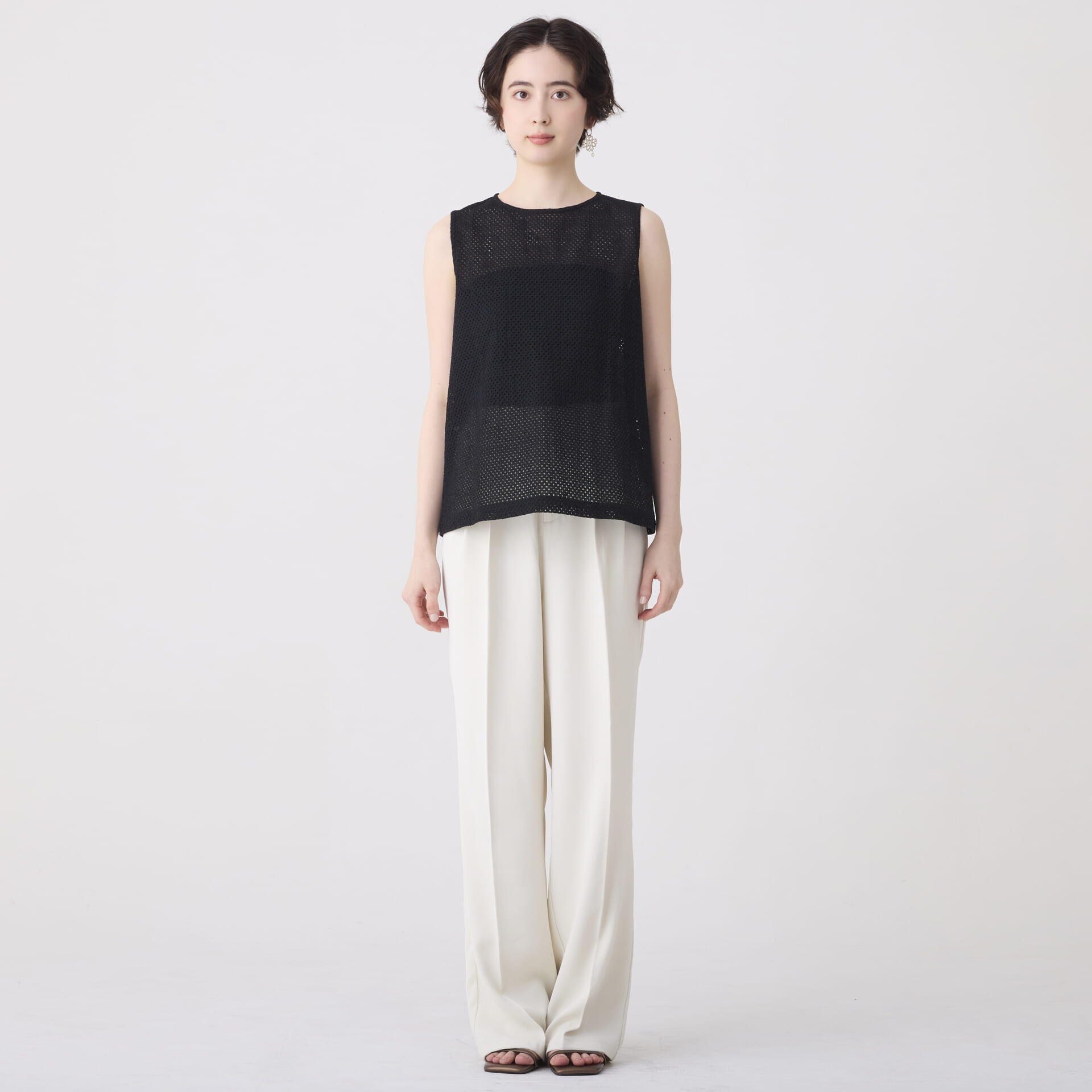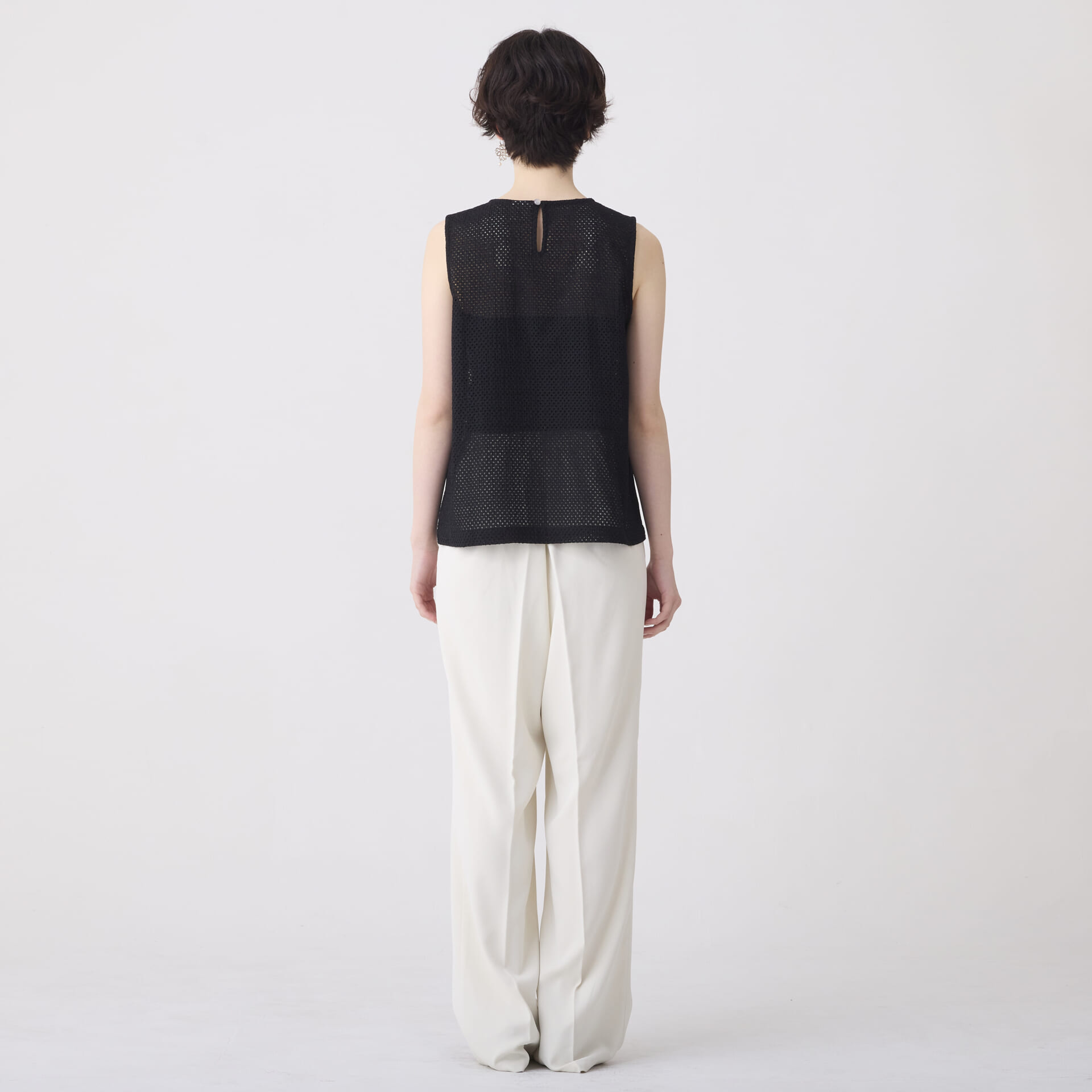 ボーラー刺繍トップス/ノースリーブインナー(ブラック)