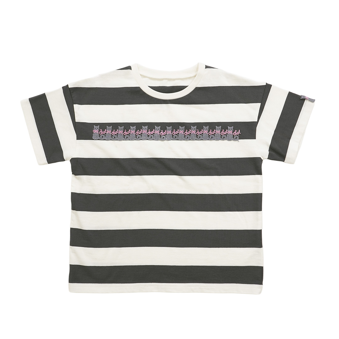 キッズボーダーカットソー/グレー×ホワイト(ロシアンブルー)