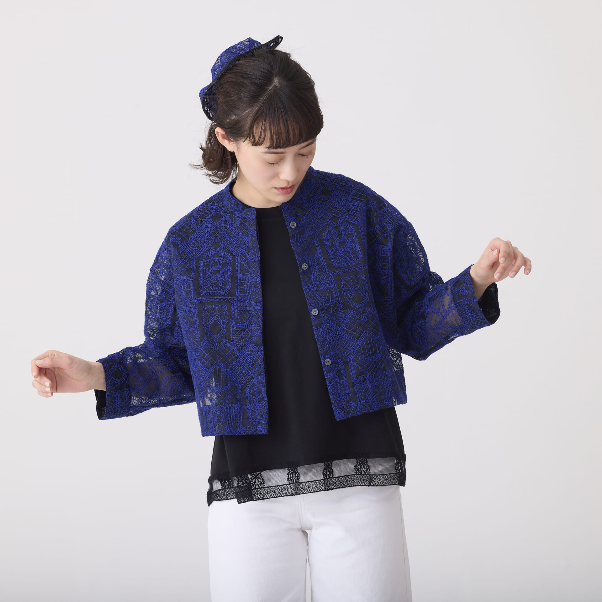 オーガンジーレースシリーズ/シャツジャケット(ネイビー)