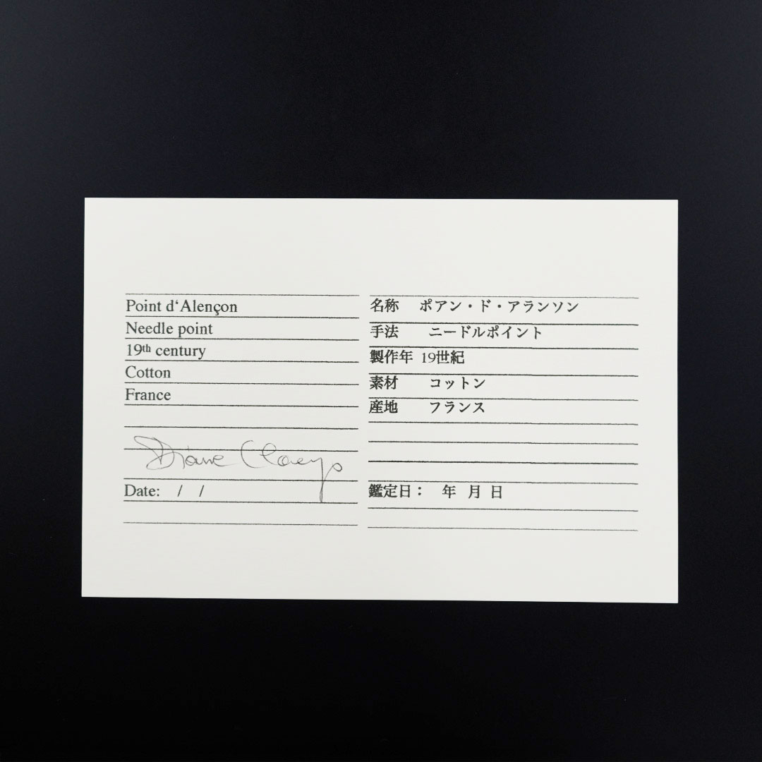 アンティーク・レース鑑定家である、ダイアン・クライス氏による鑑定書を同封してお届けいたします。