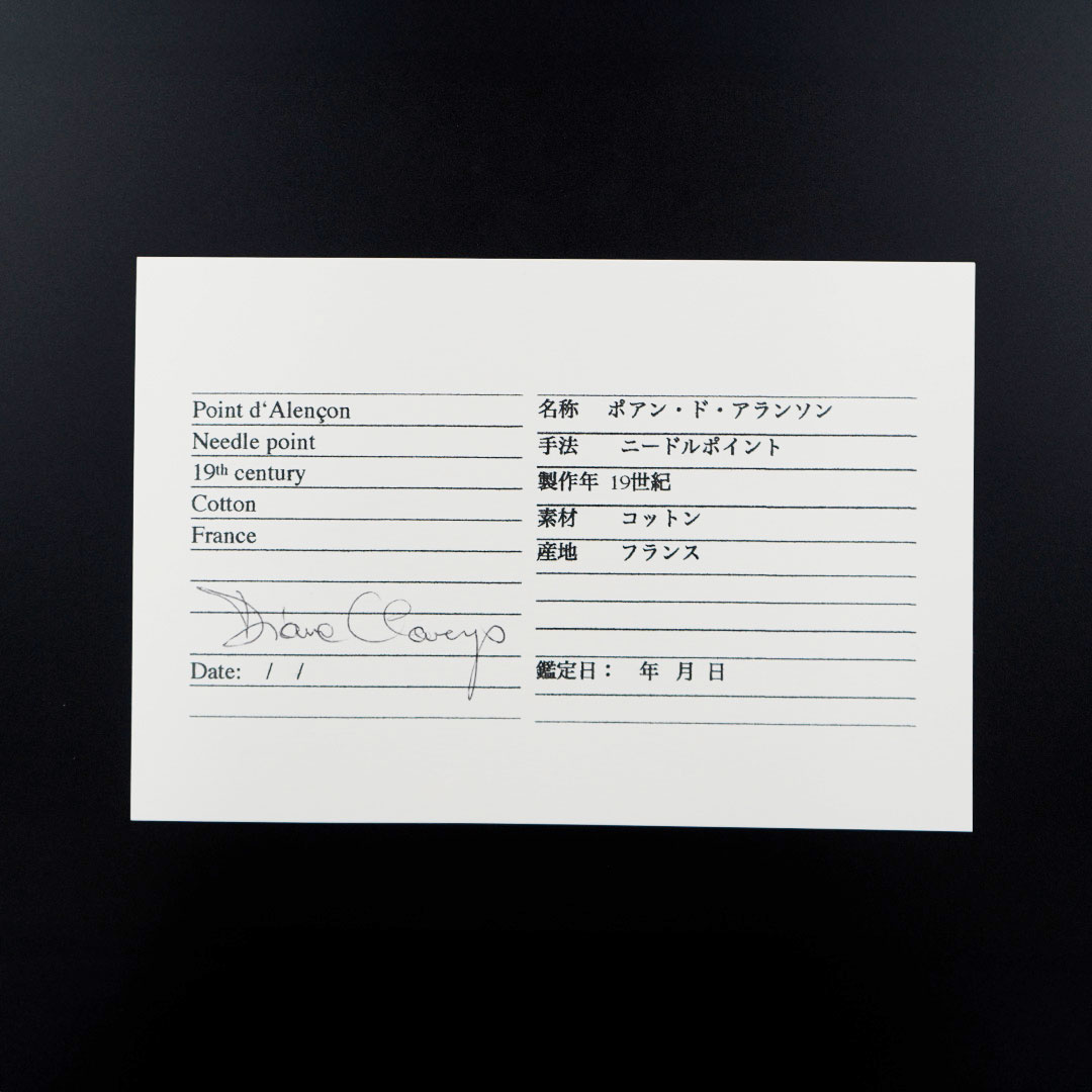 アンティーク・レース鑑定家である、ダイアン・クライス氏による鑑定書を同封してお届けいたします。