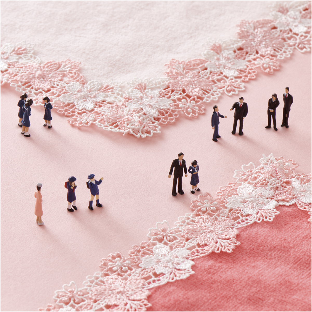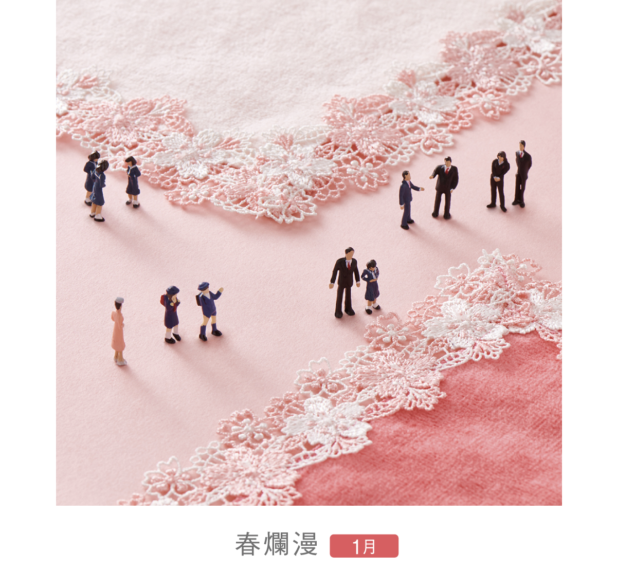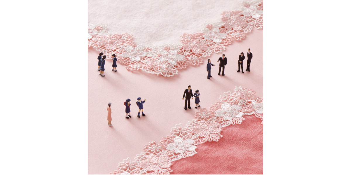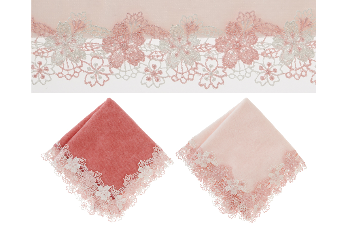 寒い冬を乗り越えた草花が一斉に芽吹き、温かい日差しに心浮き立つ…。そんな光が溢れる春のイメージをレースにしました。桜の花言葉は「優美」や「精神美」。このハンカチを持っているだけで、春の気分が盛り上がります。お祝いや感謝の気持ちを伝える、華やかな季節の贈り物にぴったりです。