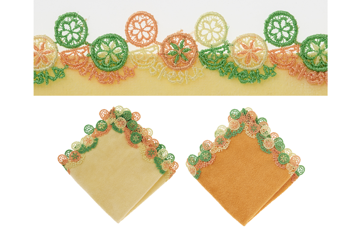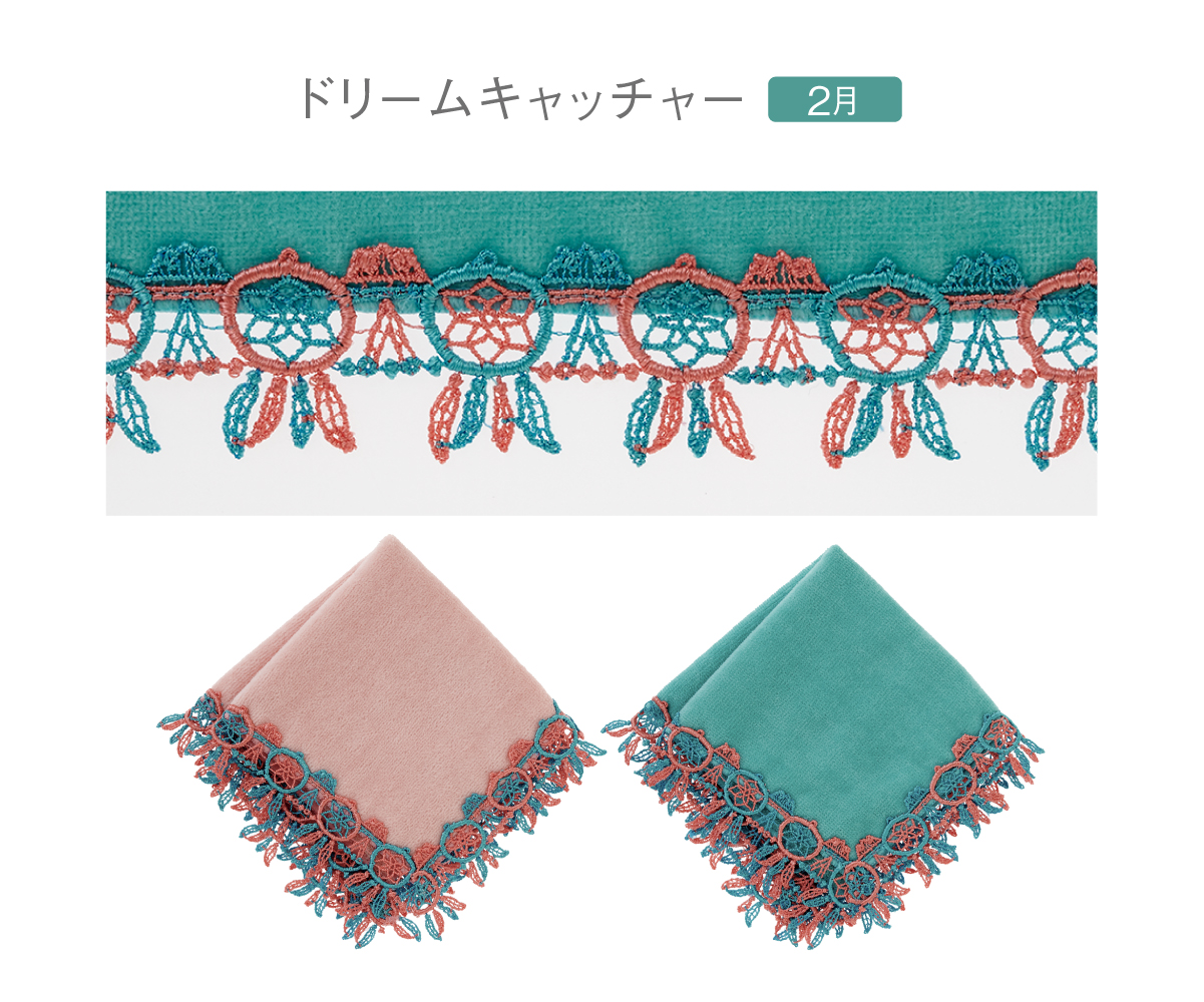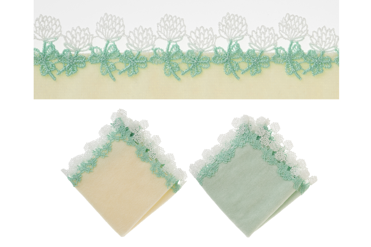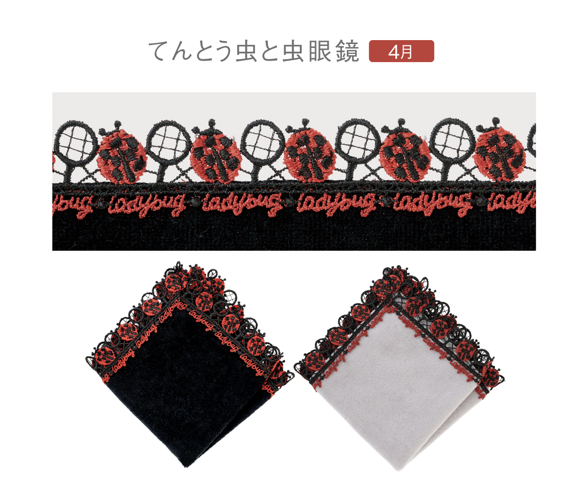 時にエレガントに、時にユーモラスに。シーズンタオルハンカチは、全て当店のデザイナーが心を込めてデザインした、オリジナルのレースを使っています。