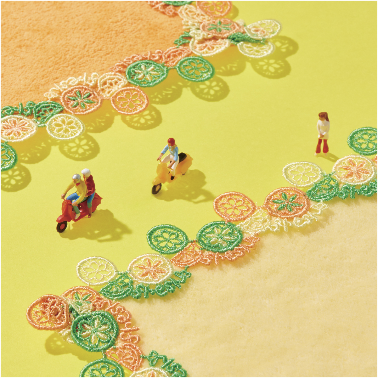 持っているだけで元気が出そうな鮮やかな色使いのタオルハンカチ。柑橘類の代表である、オレンジ・レモン・ライムをモチーフに、フレッシュ感のあるビタミンカラーで配色しました。眺めるだけで爽快さや清涼感を感じずにはいられない。目からもビタミンを吸収!?一日のモチベーションが上がる1枚です。