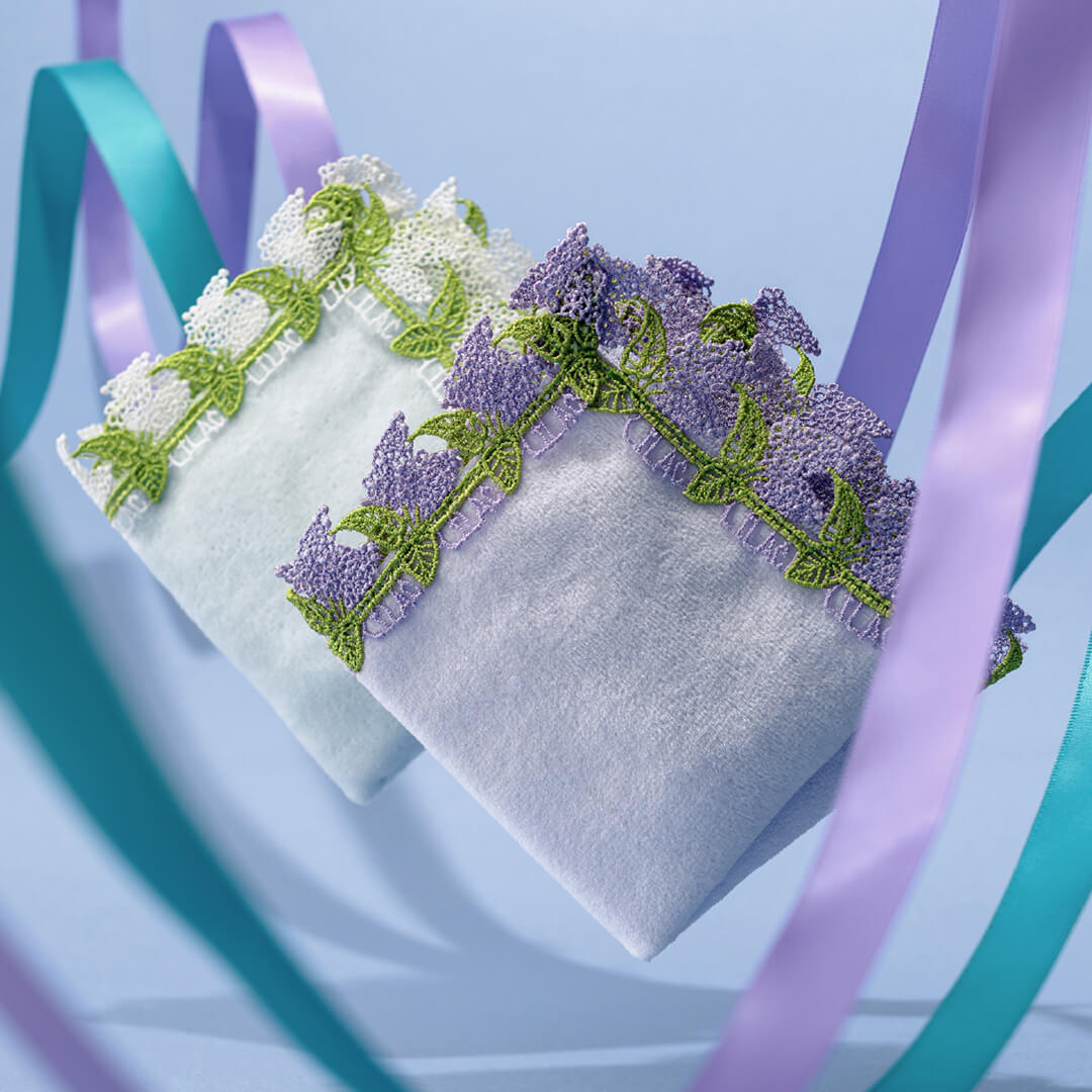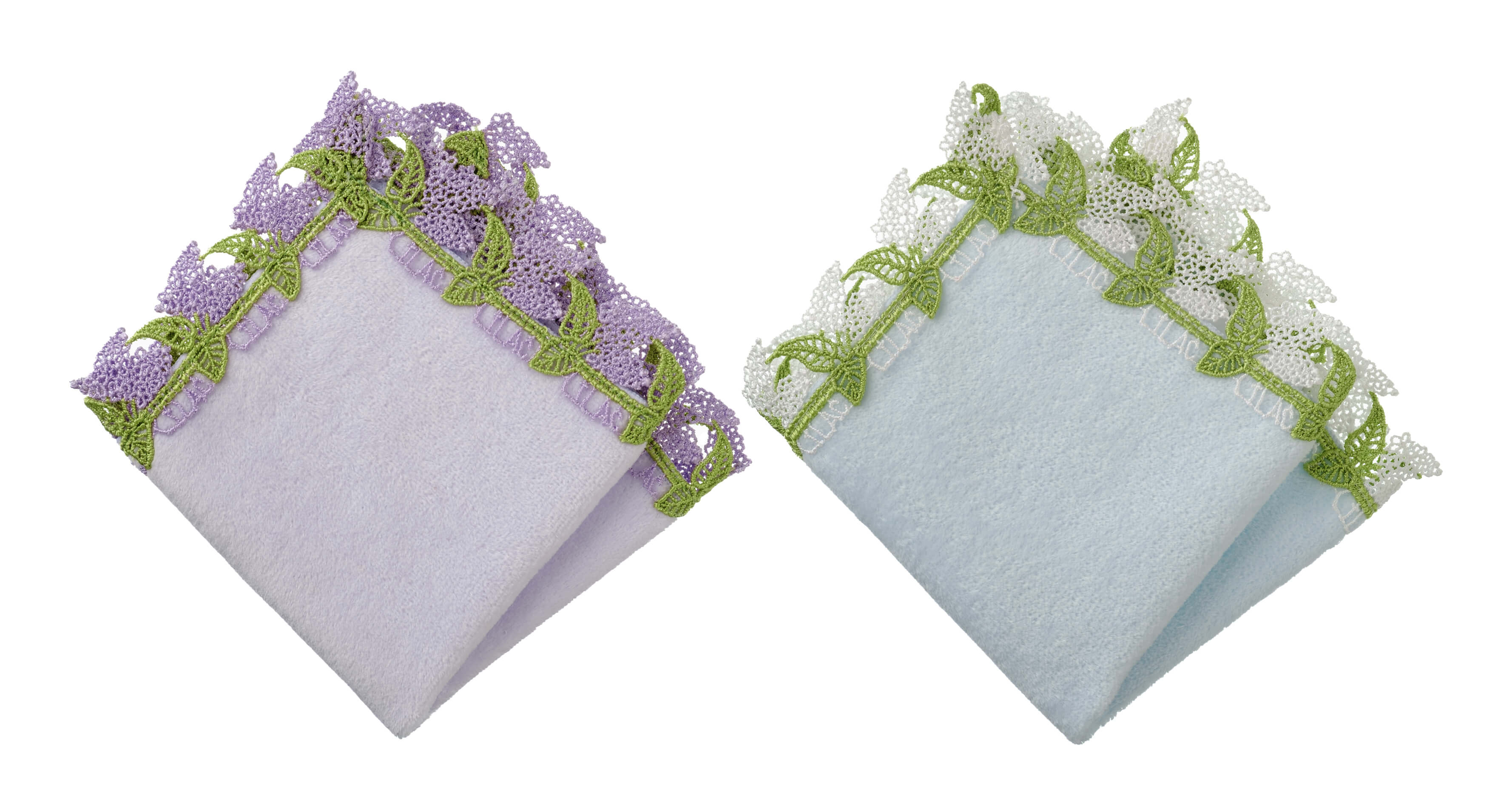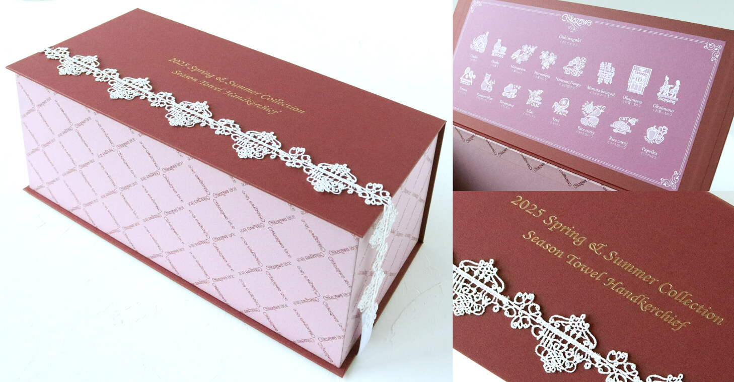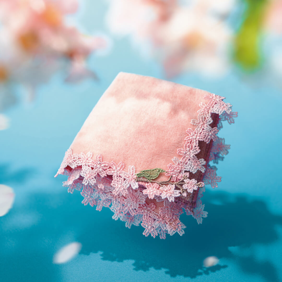 時にエレガントに、時にユーモラスに。シーズンタオルハンカチは、全て当店のデザイナーが心を込めてデザインした、オリジナルのレースを使っています。