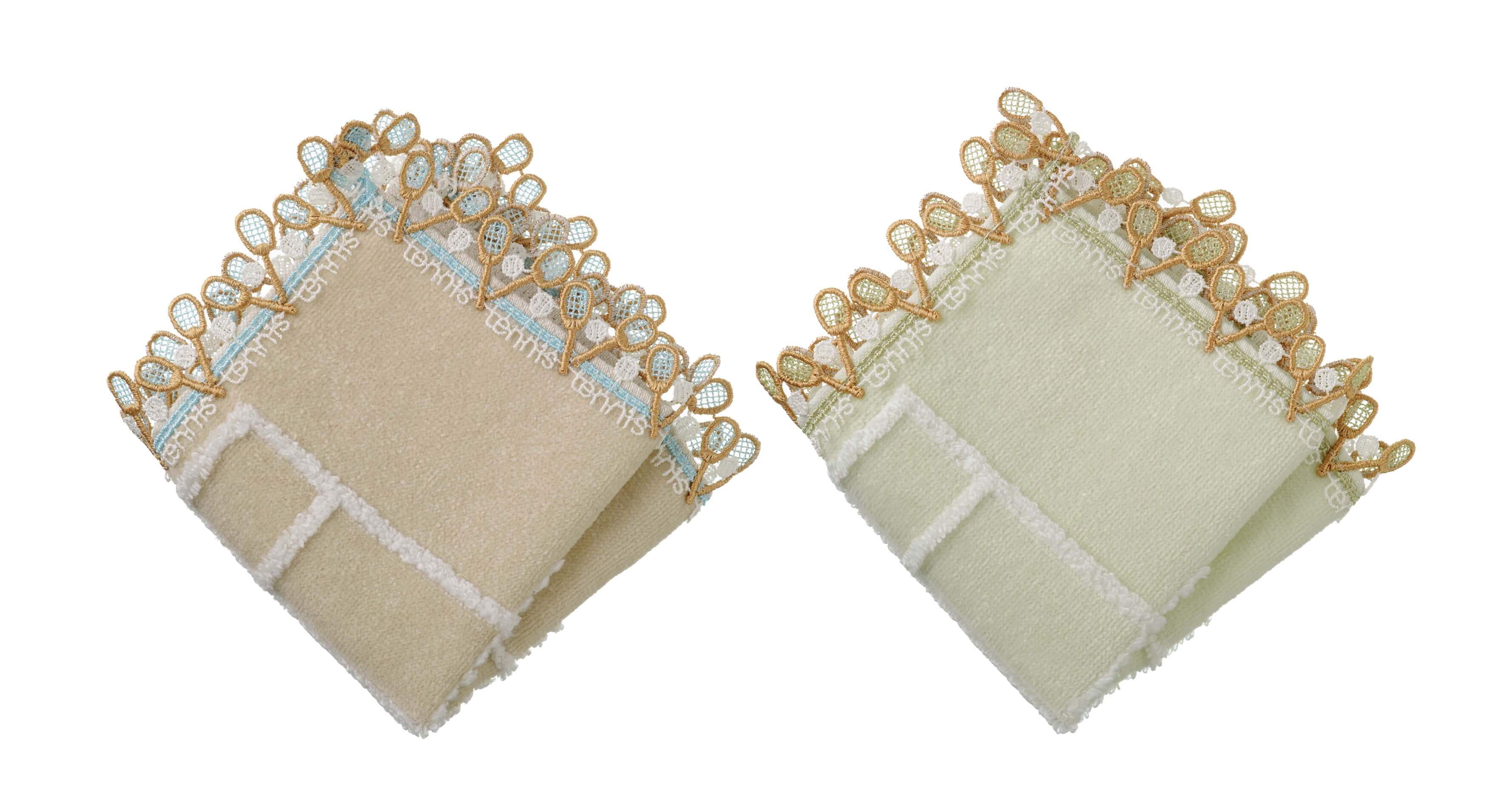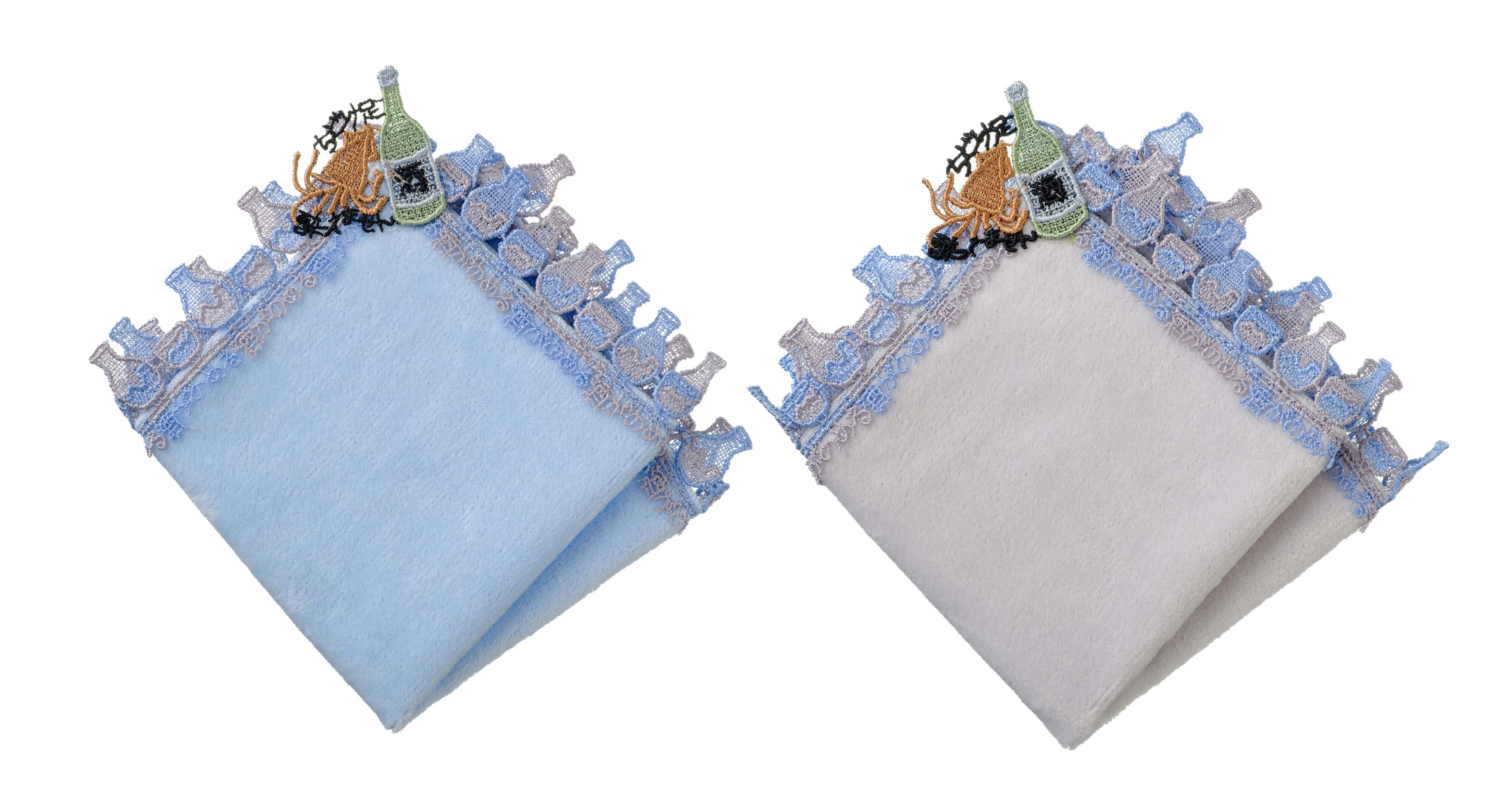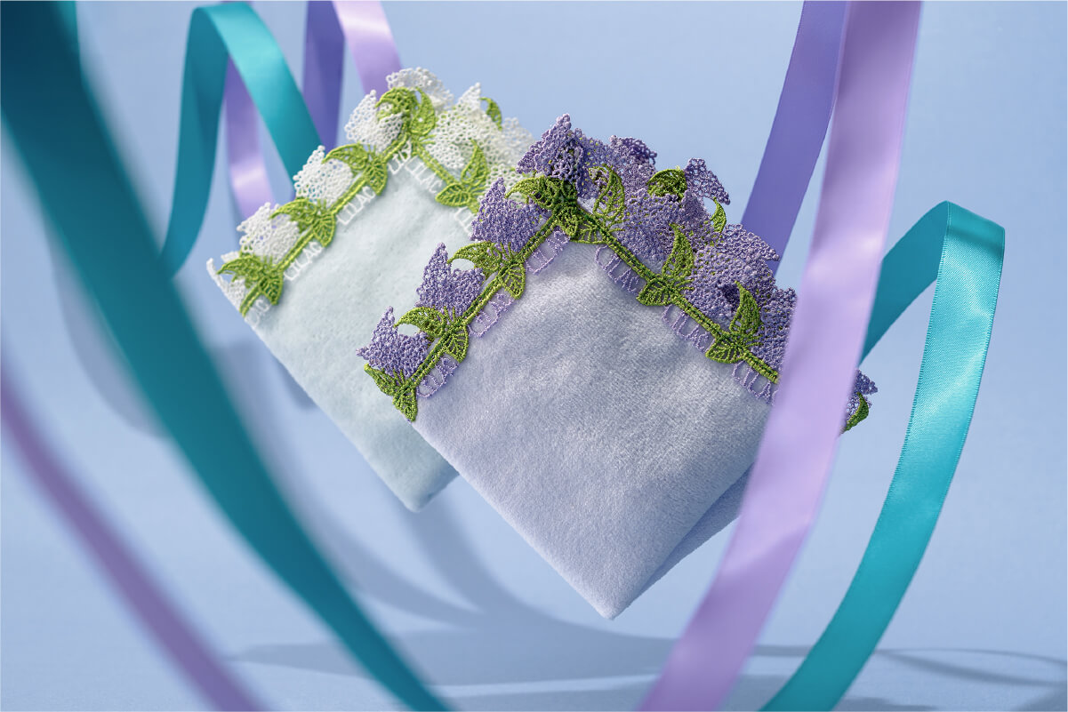 時にエレガントに、時にユーモラスに。シーズンタオルハンカチは、全て当店のデザイナーが心を込めてデザインした、オリジナルのレースを使っています。