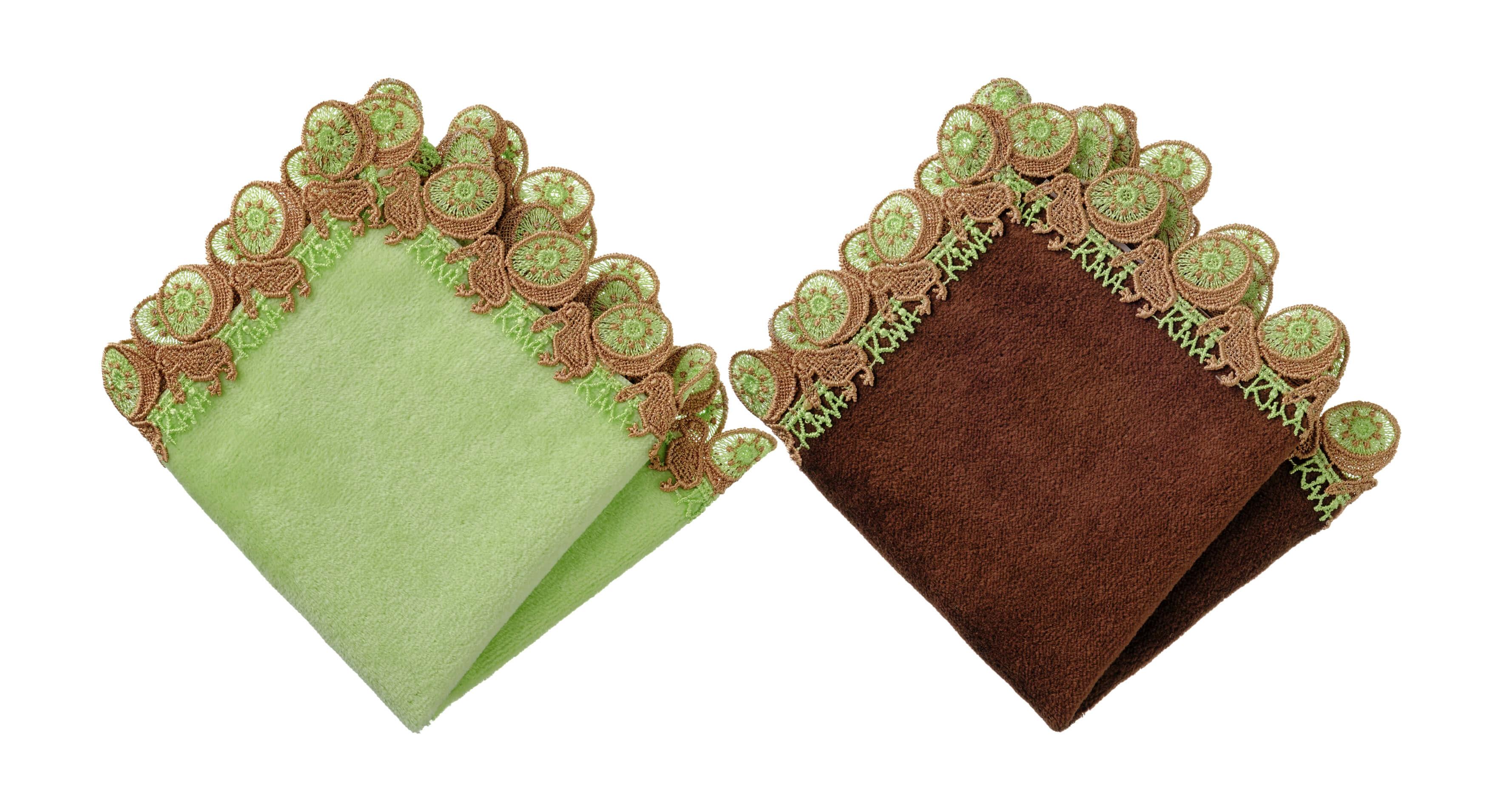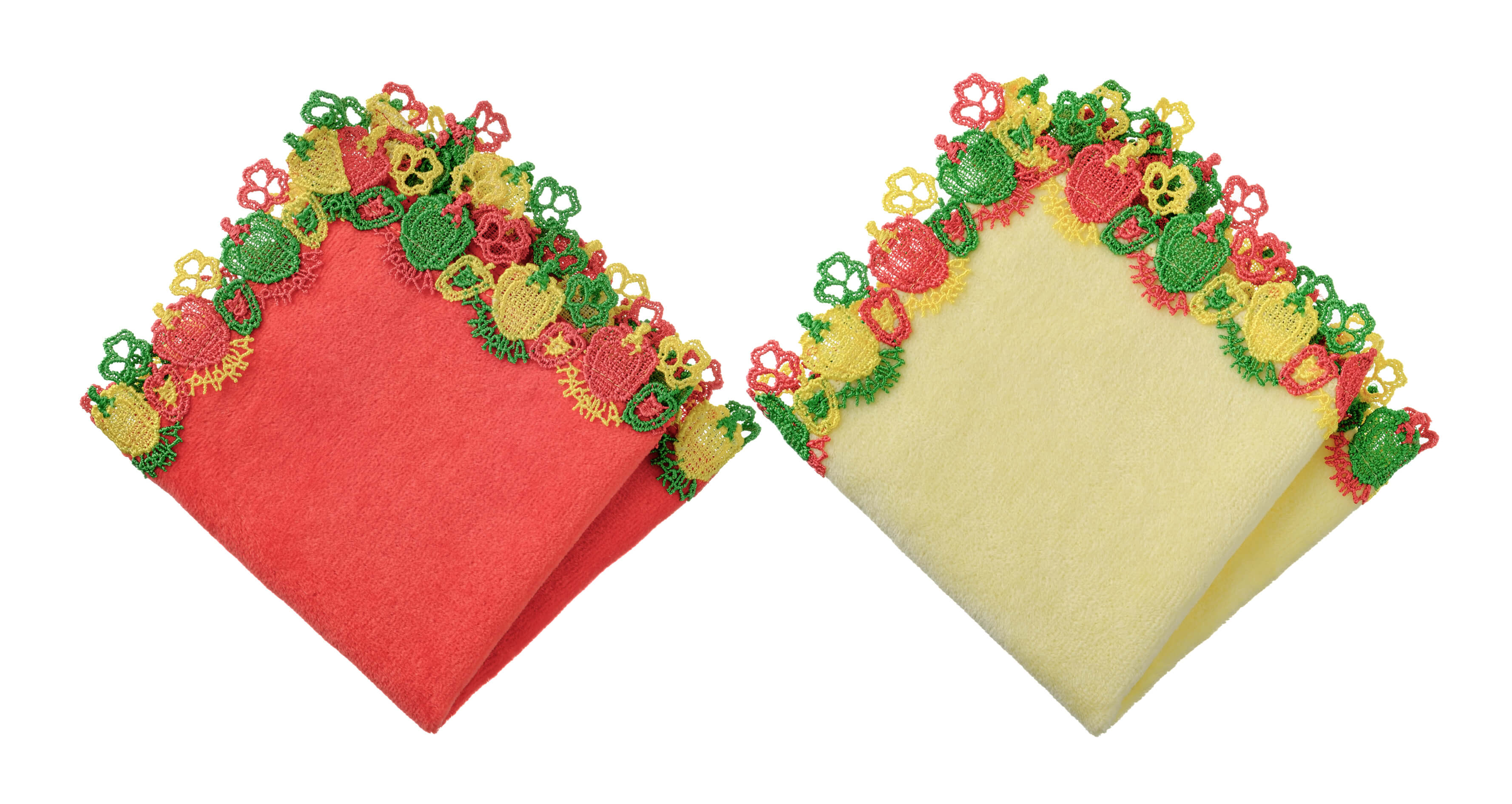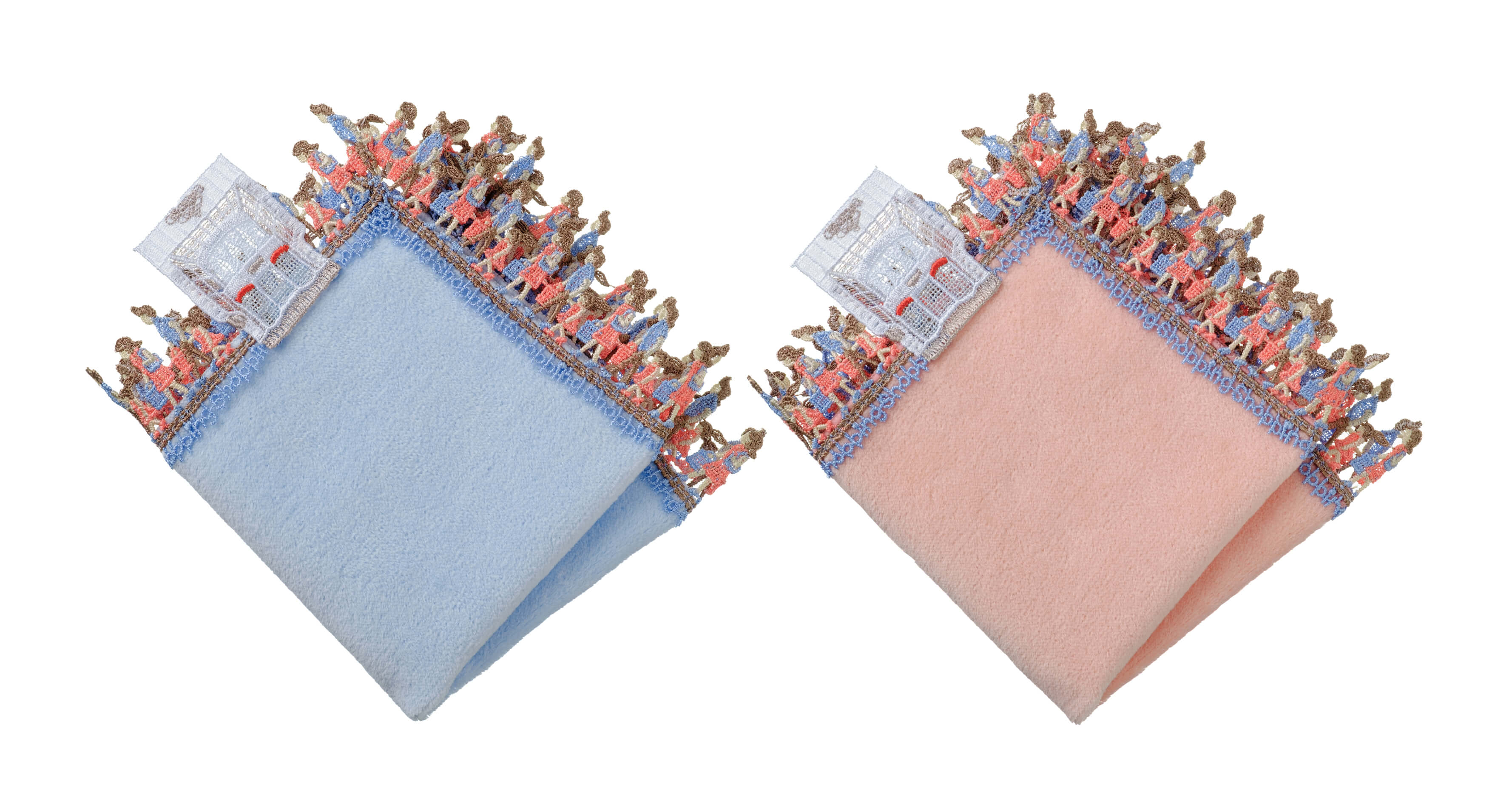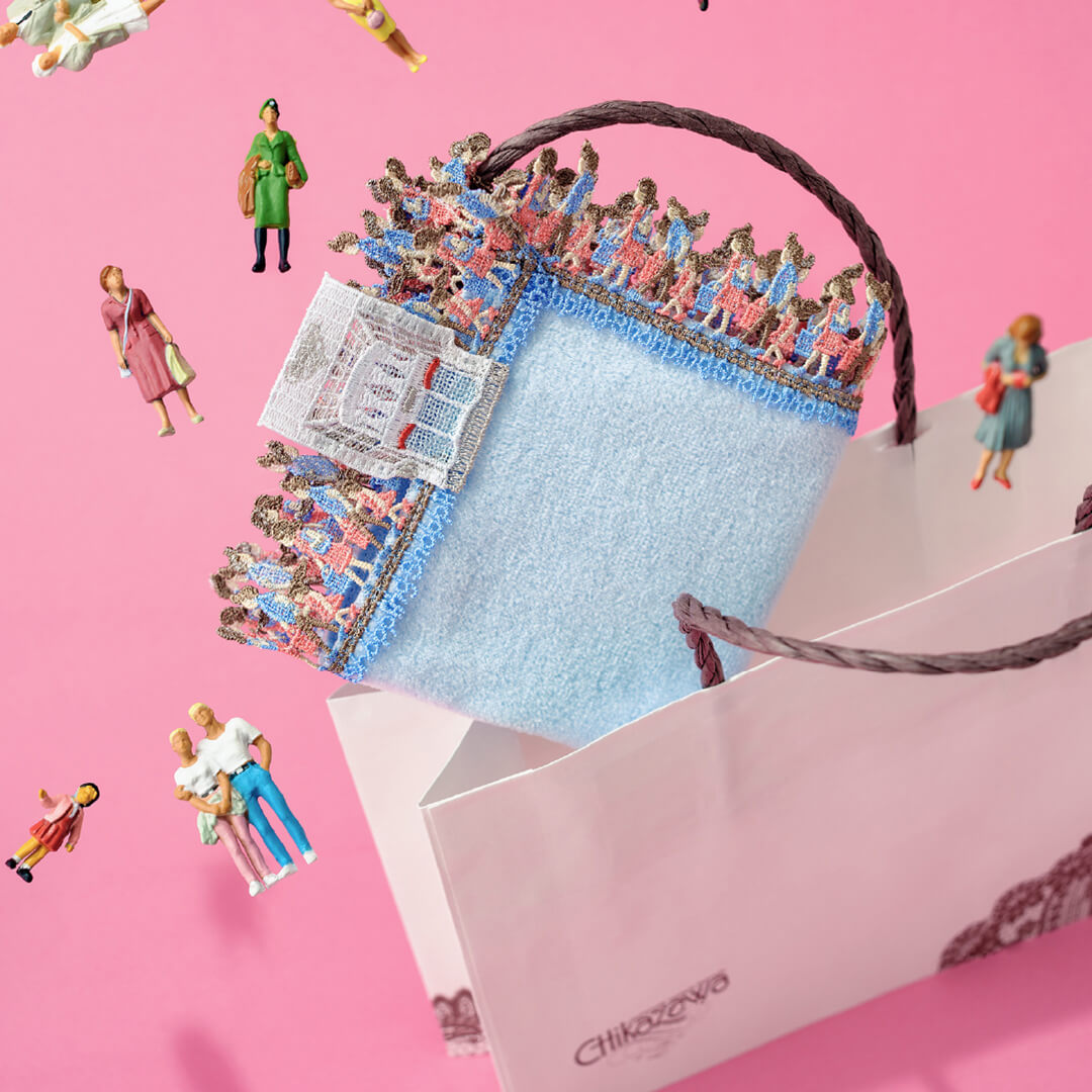 時にエレガントに、時にユーモラスに。シーズンタオルハンカチは、全て当店のデザイナーが心を込めてデザインした、オリジナルのレースを使っています。