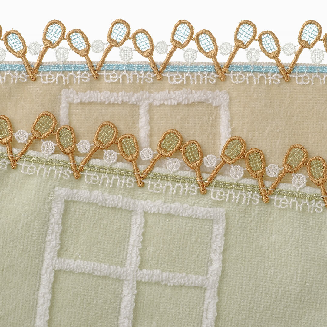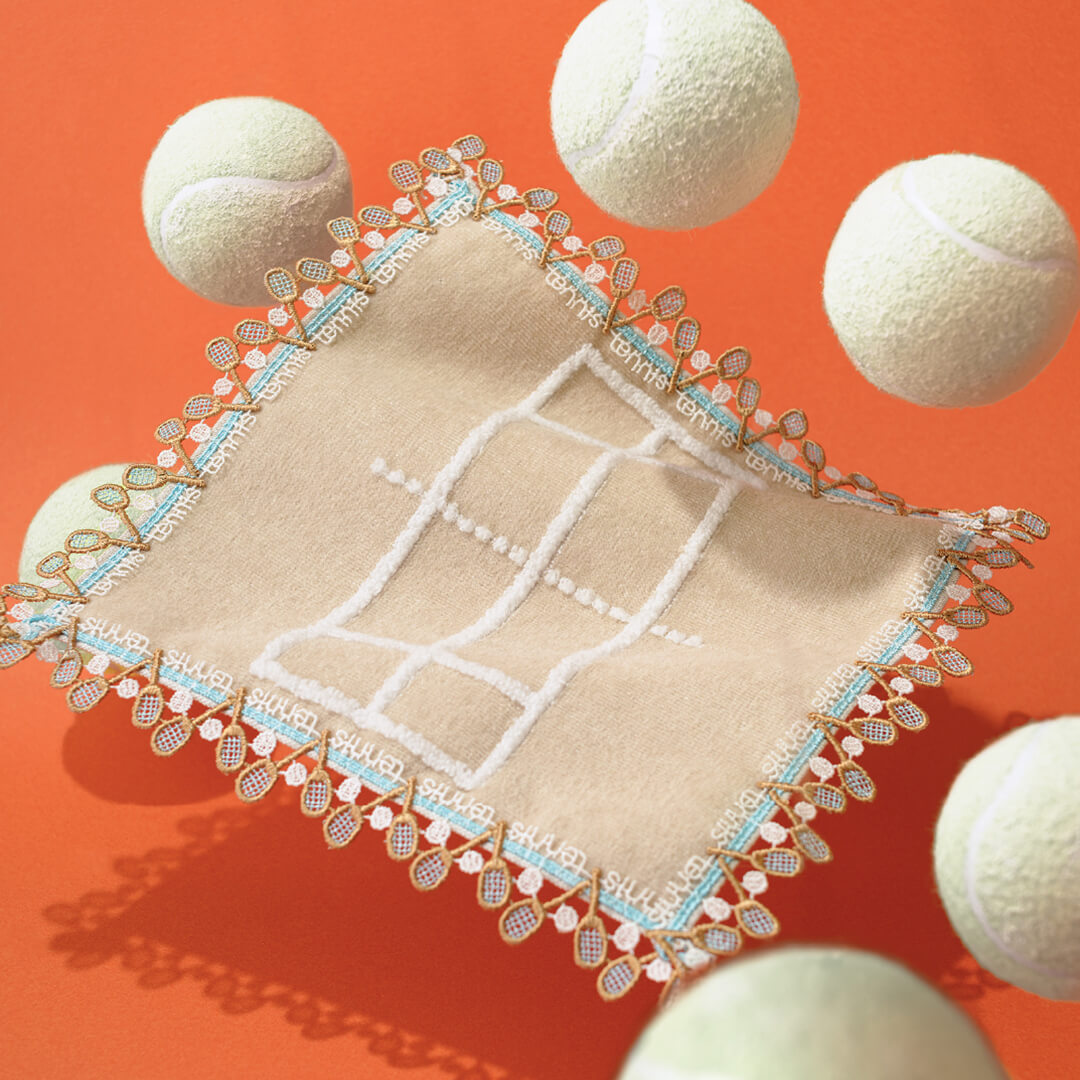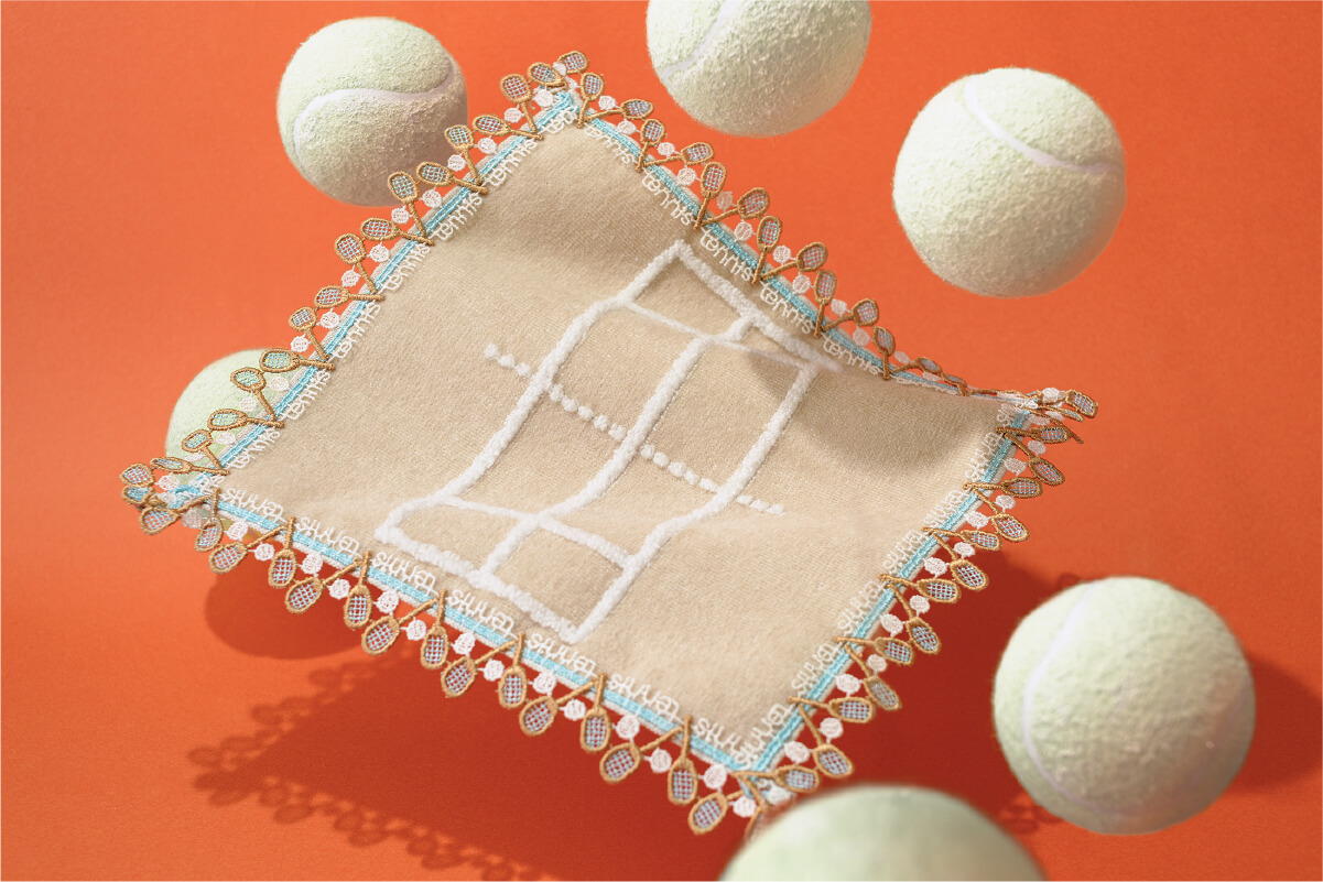 1859年横浜開港。さまざまな西洋文化の発祥の地として名高い横浜、テニスもそのひとつです。1876年(明治9年)に、横浜の山手公園で日本で初めてテニスがプレイされたことにちなみ、デザインしました。その当時の旧式のラケットやボールにこだわり、グリーンの生地はグラスコート、ベージュはクレ-コートを表現。体を動かして、気持ちのいい汗をかきましょう!