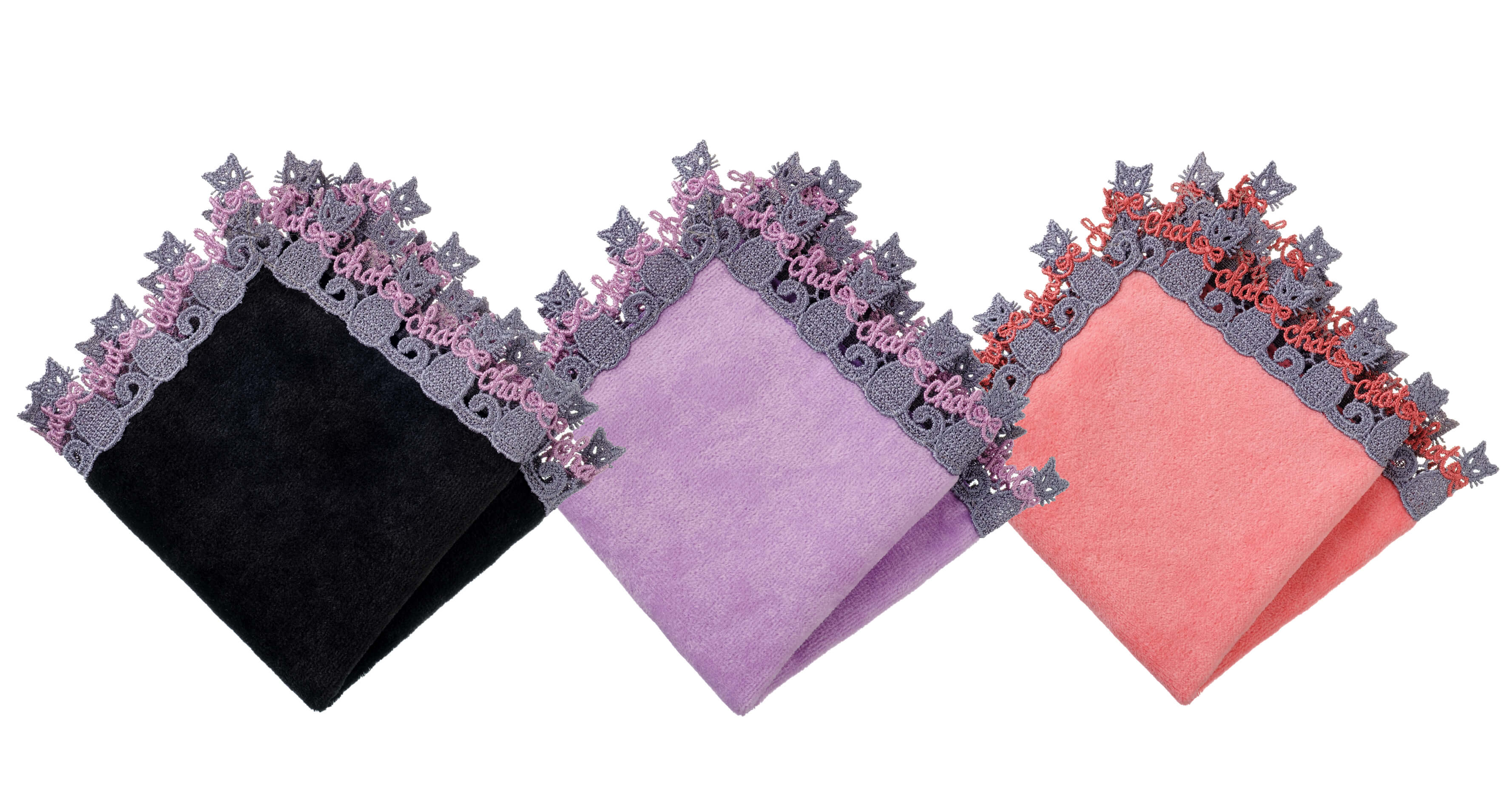 ブラック・オーキッドピンク・コーラルピンク タオル:今治製/約25.5cm角/¥1,650